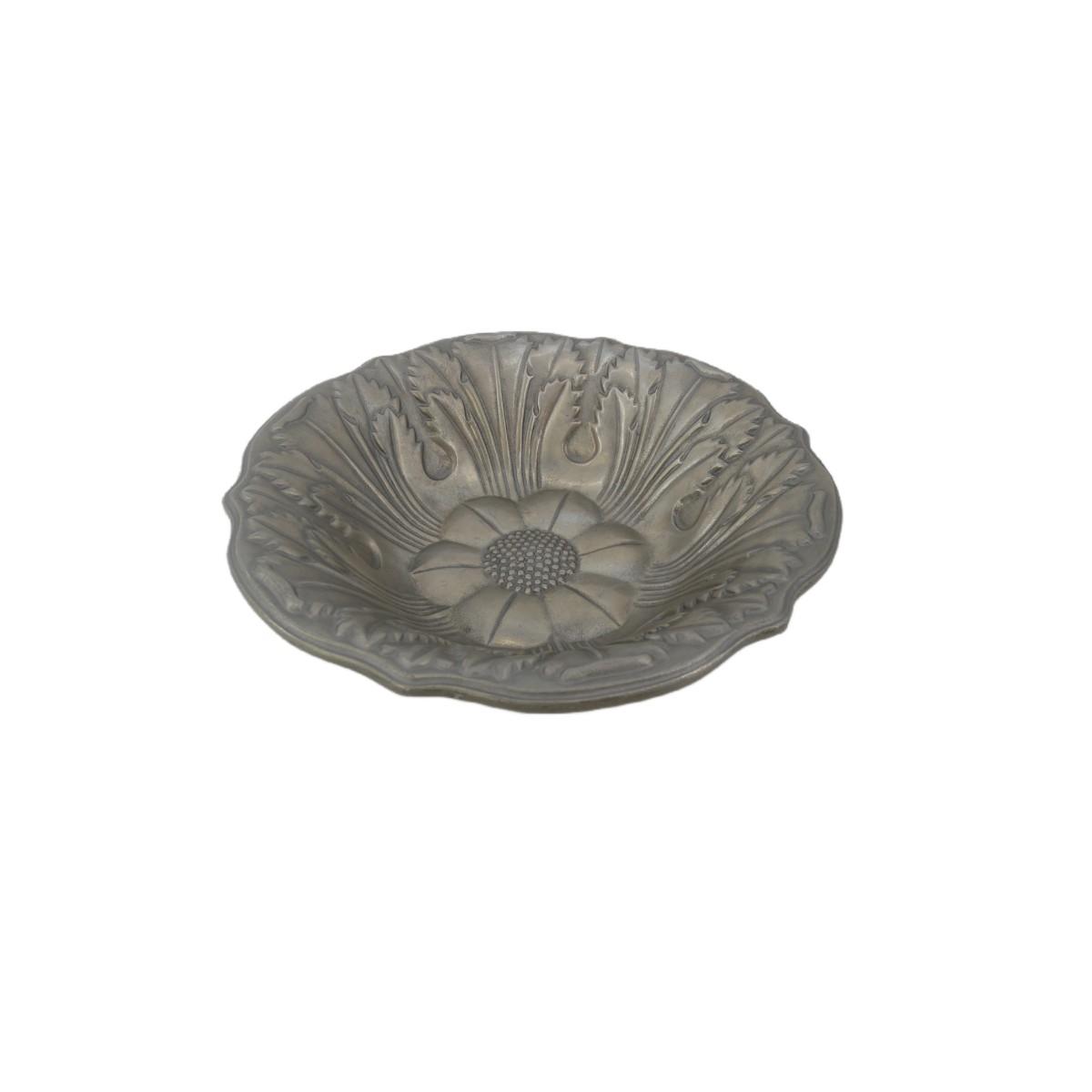 Vintage The Wilton Co. fully cast pewter sunflower serving bowl. Maker's mark is stamped on bottom. Excellent condition! Measures 13.25" in diameter and 3.5" in depth, weighs is 4 lbs 4 oz. (D70)