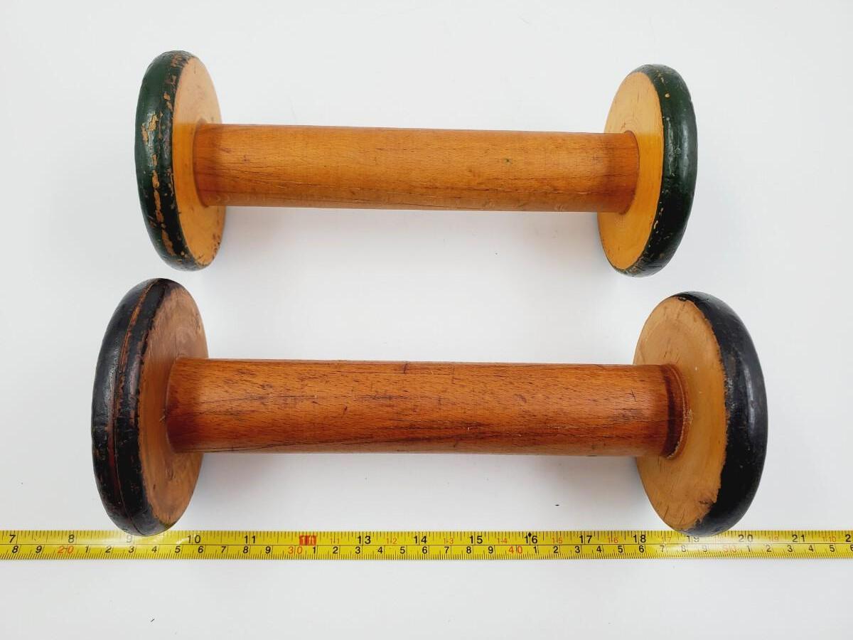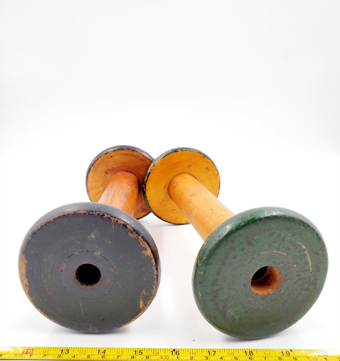 Very cool vintage spools..the round ones are approximately 9in talk while the odd shaped ones are approximately 12in tall, good condition