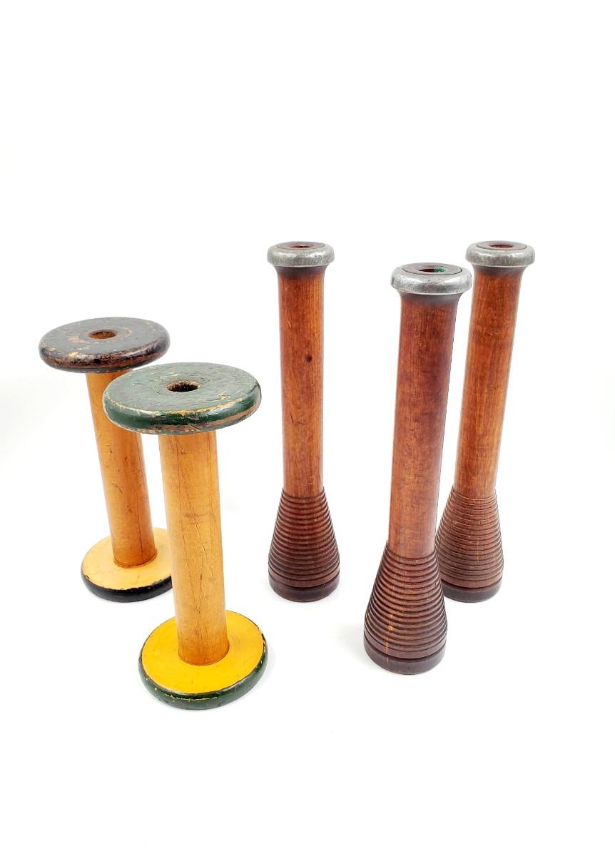 LARGE VINTAGE WOODEN SPOOL LOT OF 5