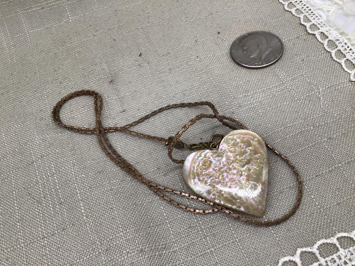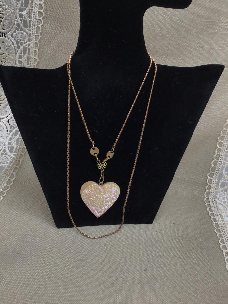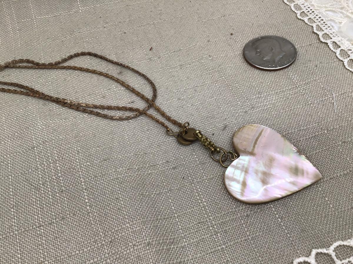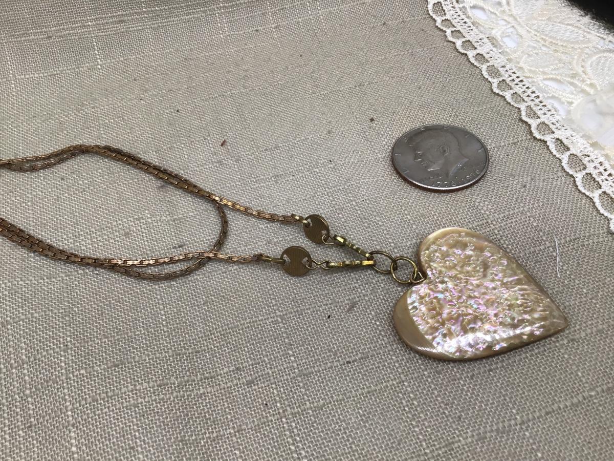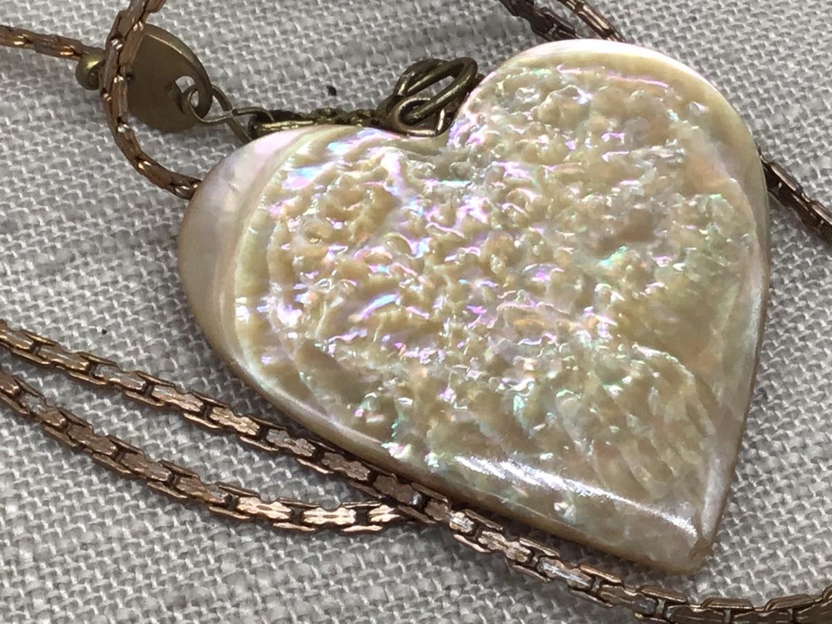 Large VintageHeart Shell Pendant with Gold Tone Chain