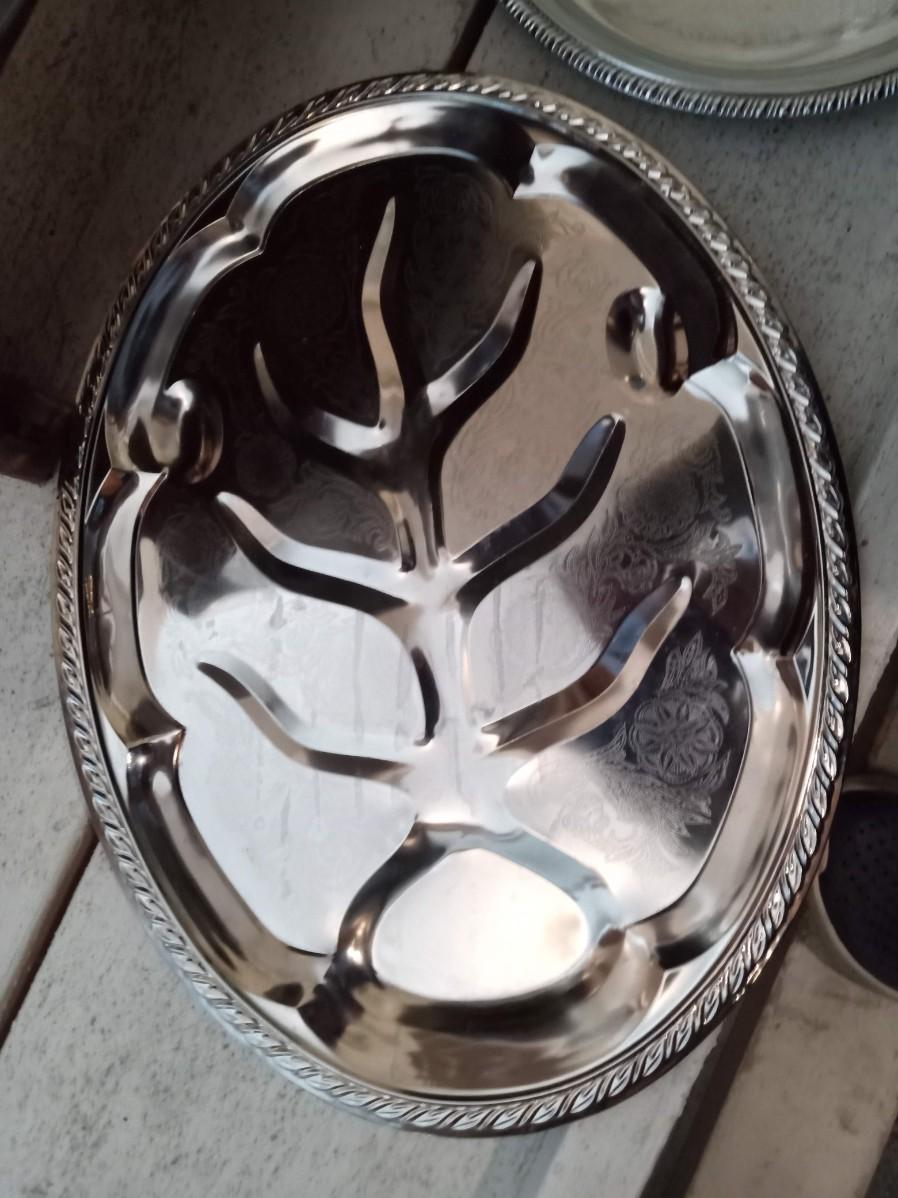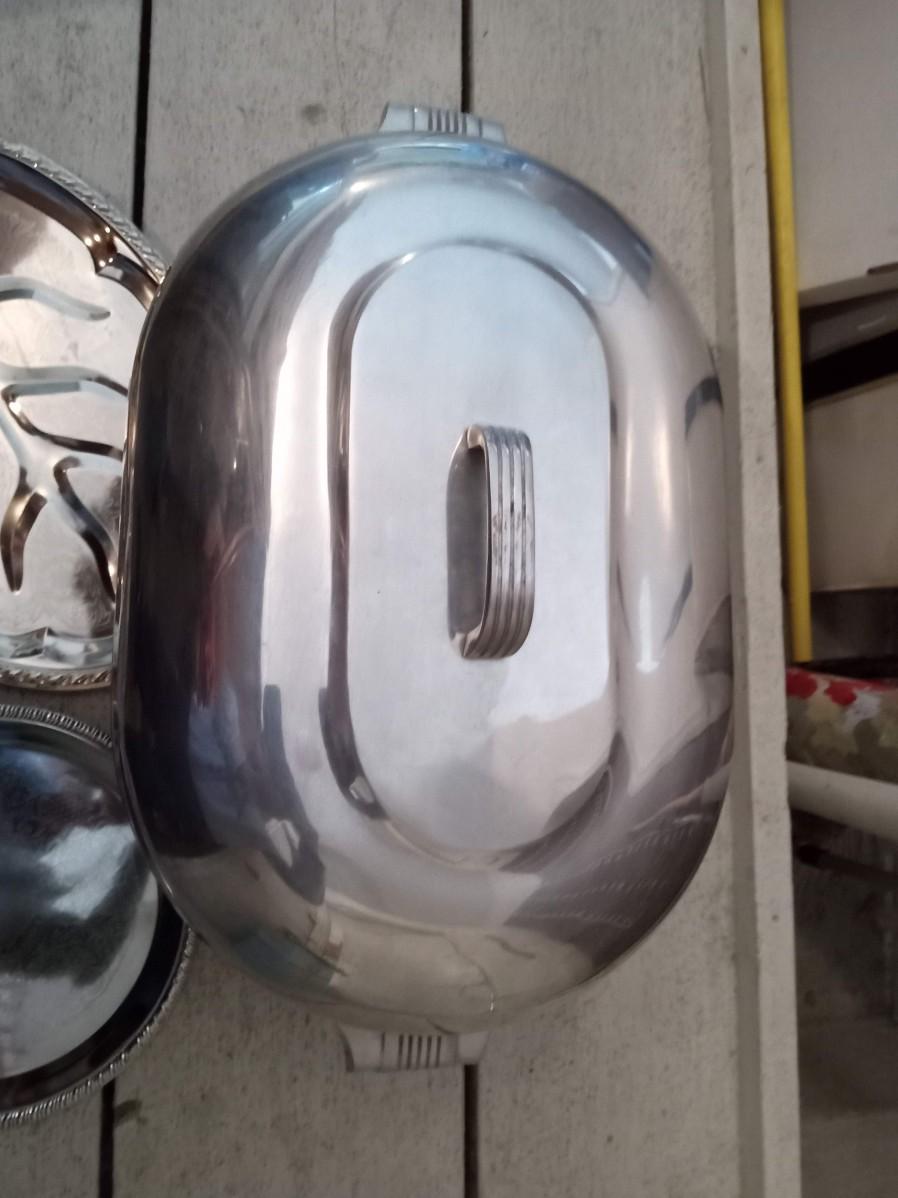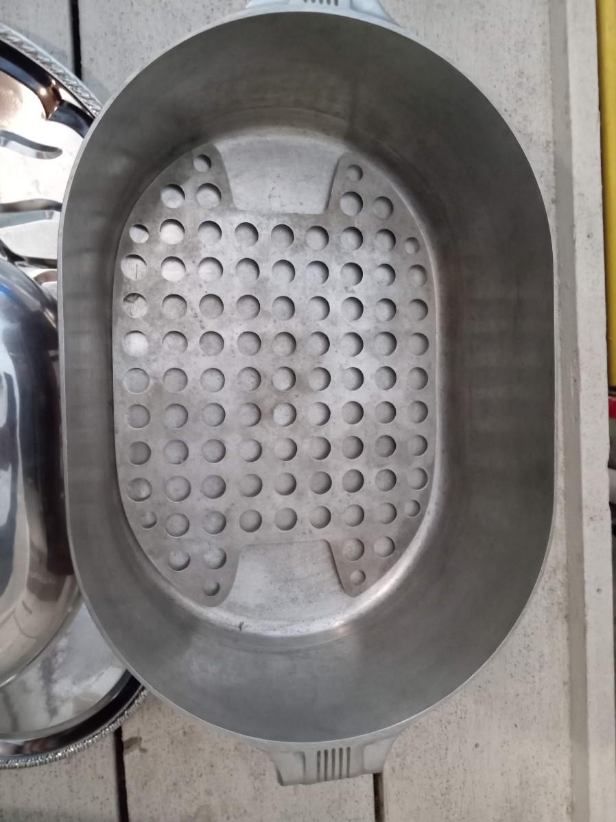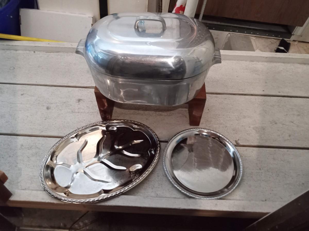 LARGE WAGNER WARE ROASTING PAN AND 2 SERVING PLATTERS