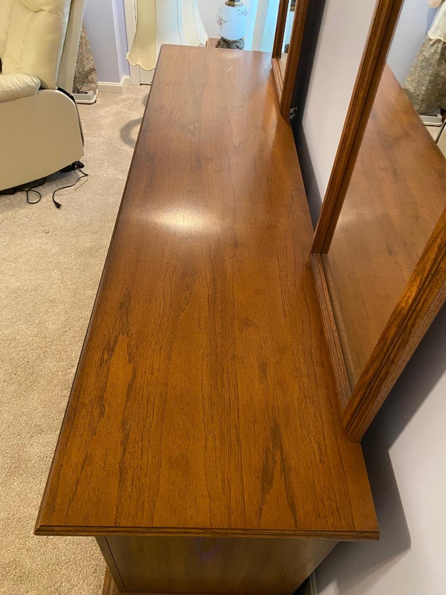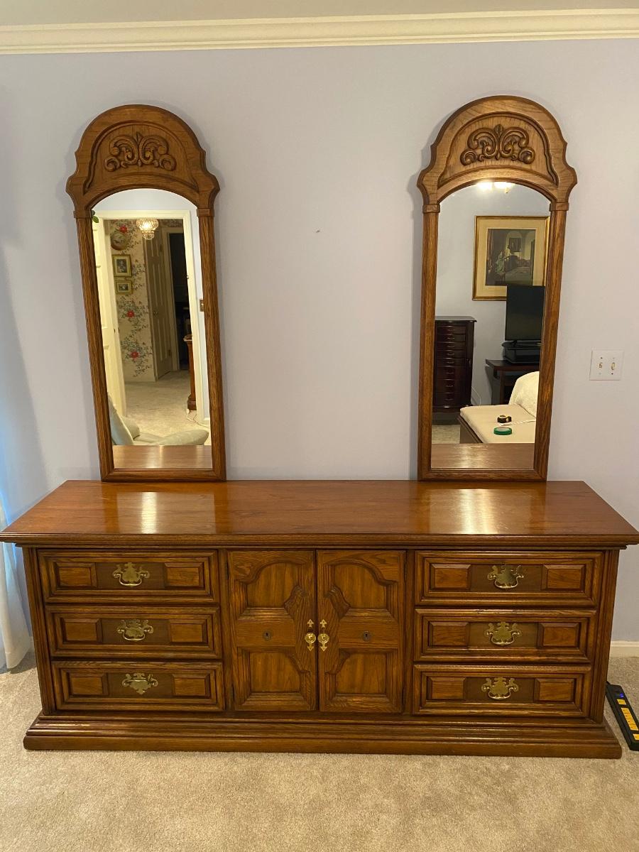 Large Walnut Triple Dresser W/ 2 Mirrors