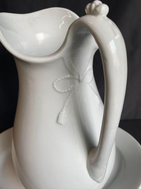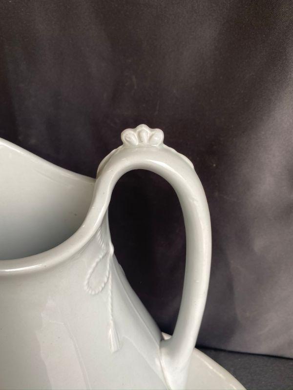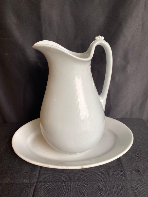 Large white pitcher with a complimentary white charger plate. Good Vintage Condition. No Chips.
