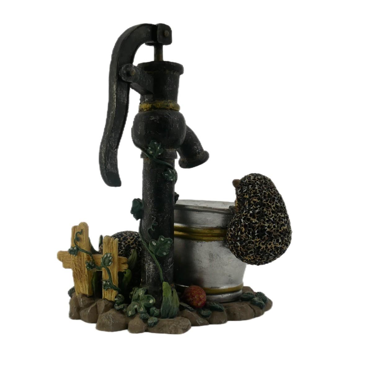 Large Bramble & Clover figurine of two hedgehogs in a garden with a water spout and bucket. Super cute figurine! Measures L 6.25" x H 8".