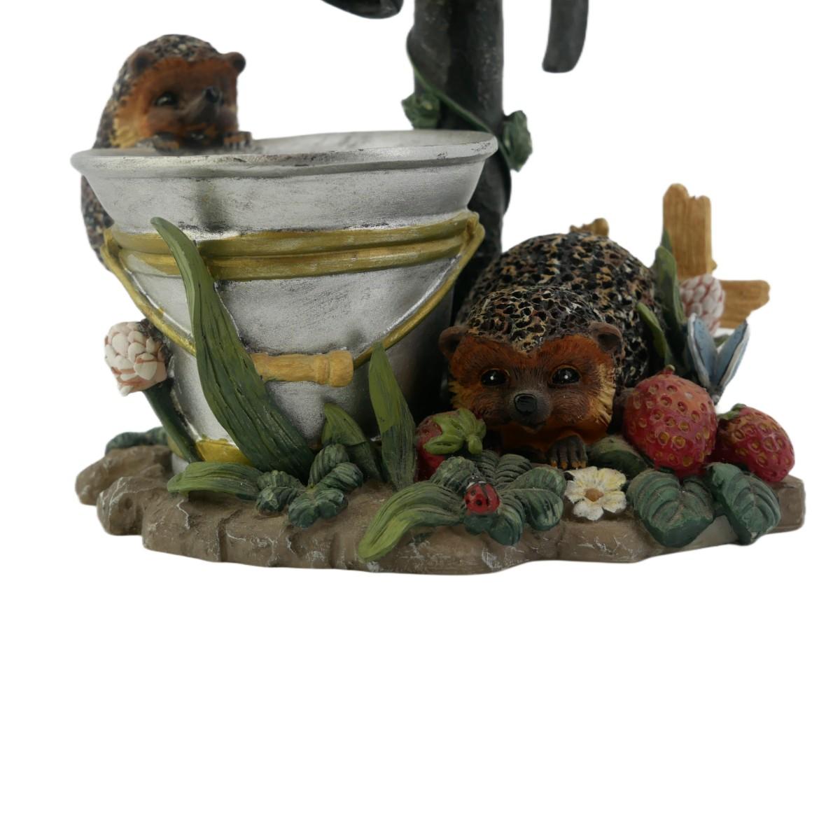Large Bramble & Clover figurine of two hedgehogs in a garden with a water spout and bucket. Super cute figurine! Measures L 6.25" x H 8".
