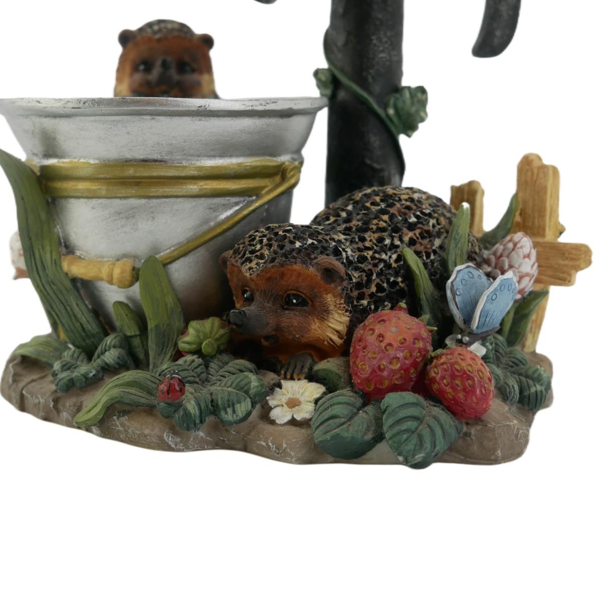 Large Bramble & Clover figurine of two hedgehogs in a garden with a water spout and bucket. Super cute figurine! Measures L 6.25" x H 8".