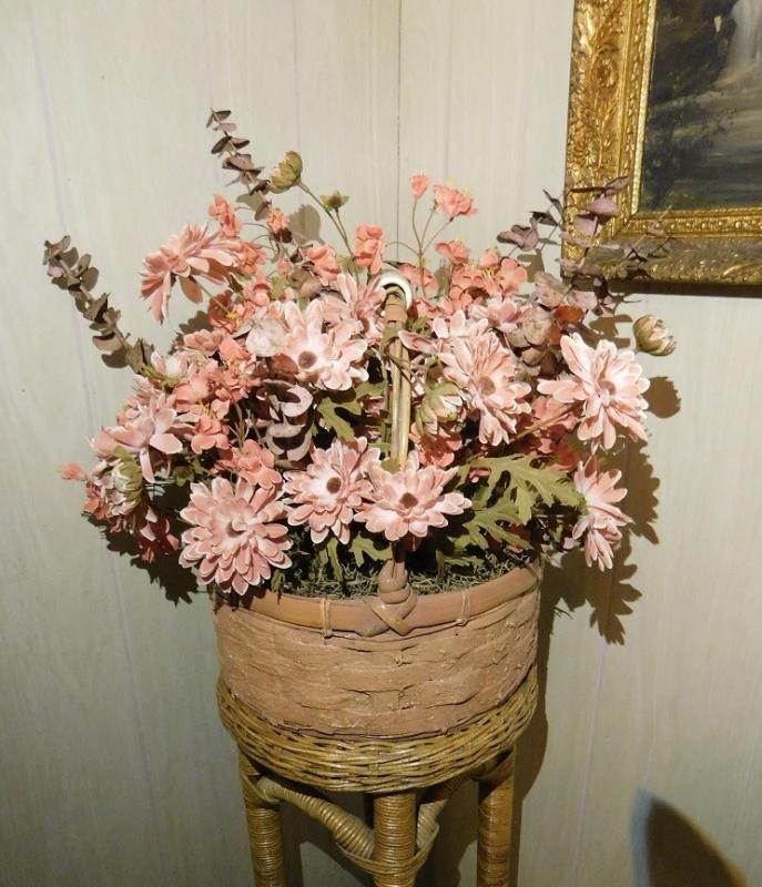 Large Weave Basket with Porcelain Handle. Getting the basket and contents. Good condition.