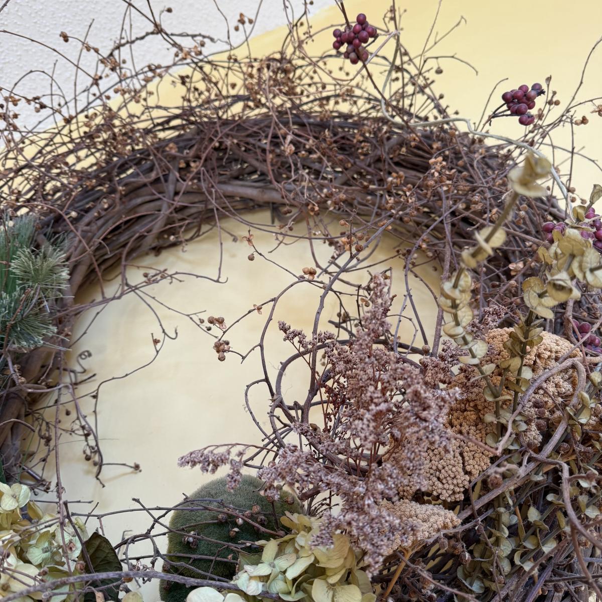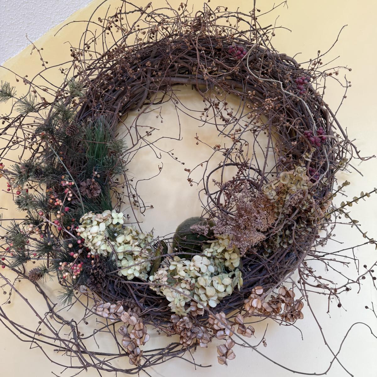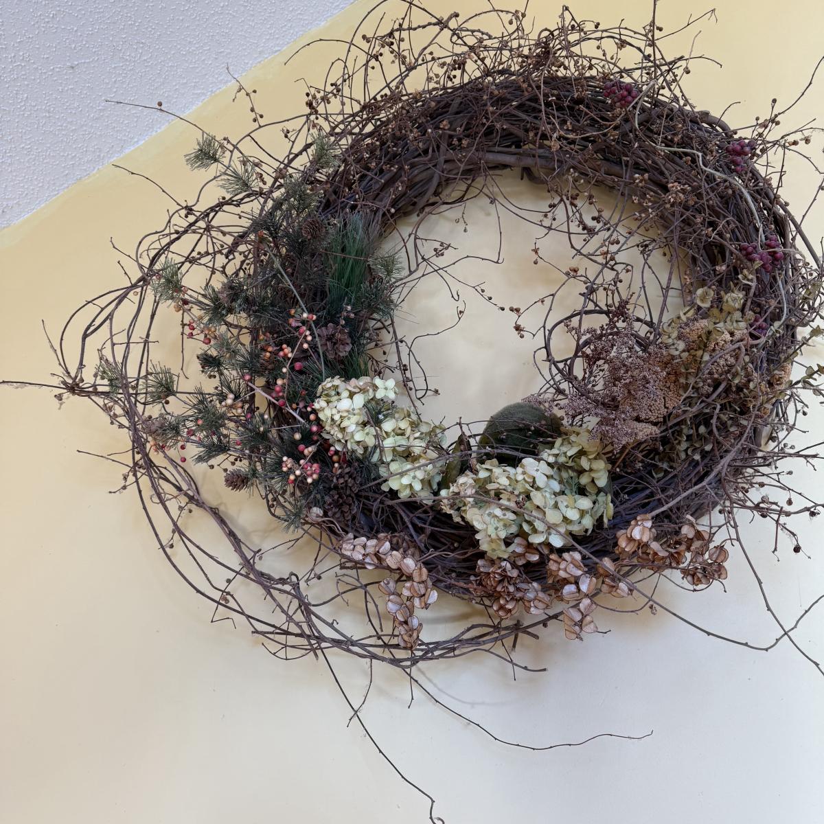 This lot contains a whimsical, large decorative wreath. The base measures approximately 29”D, however there are a few wispy branches that sprawl a bit further out, see pictures for details. While some of it does appear to be made out of real, dried raw material such as the base is made out of real branches, some of the decorative accents are faux flowers. Local pickup only.