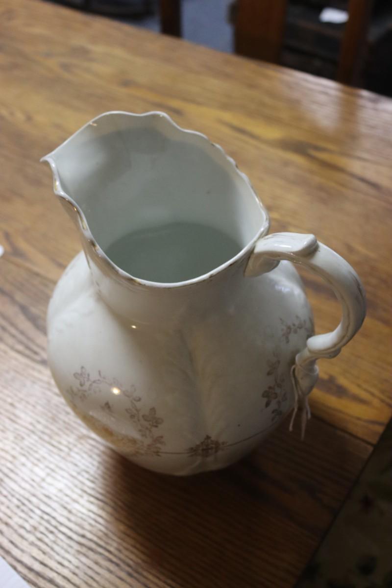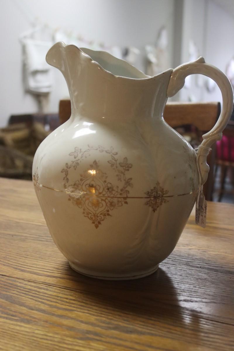 Large White and Gold Pitcher - 11 1/2 inches Tall and 8 1/2 diameter