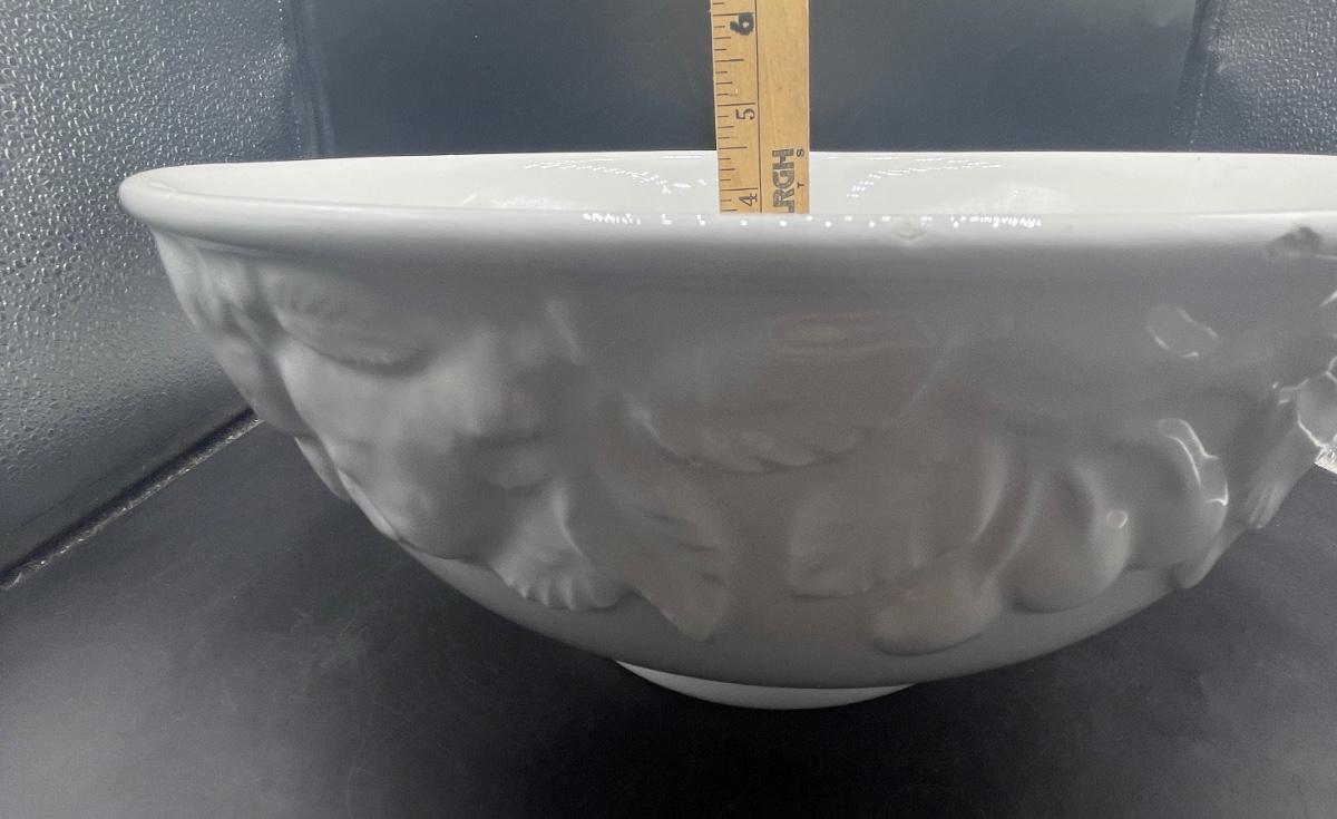 Approx. 13” across, 2 small chips in the rim (see photos). By ggggg