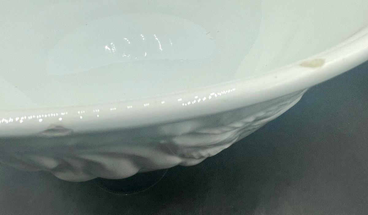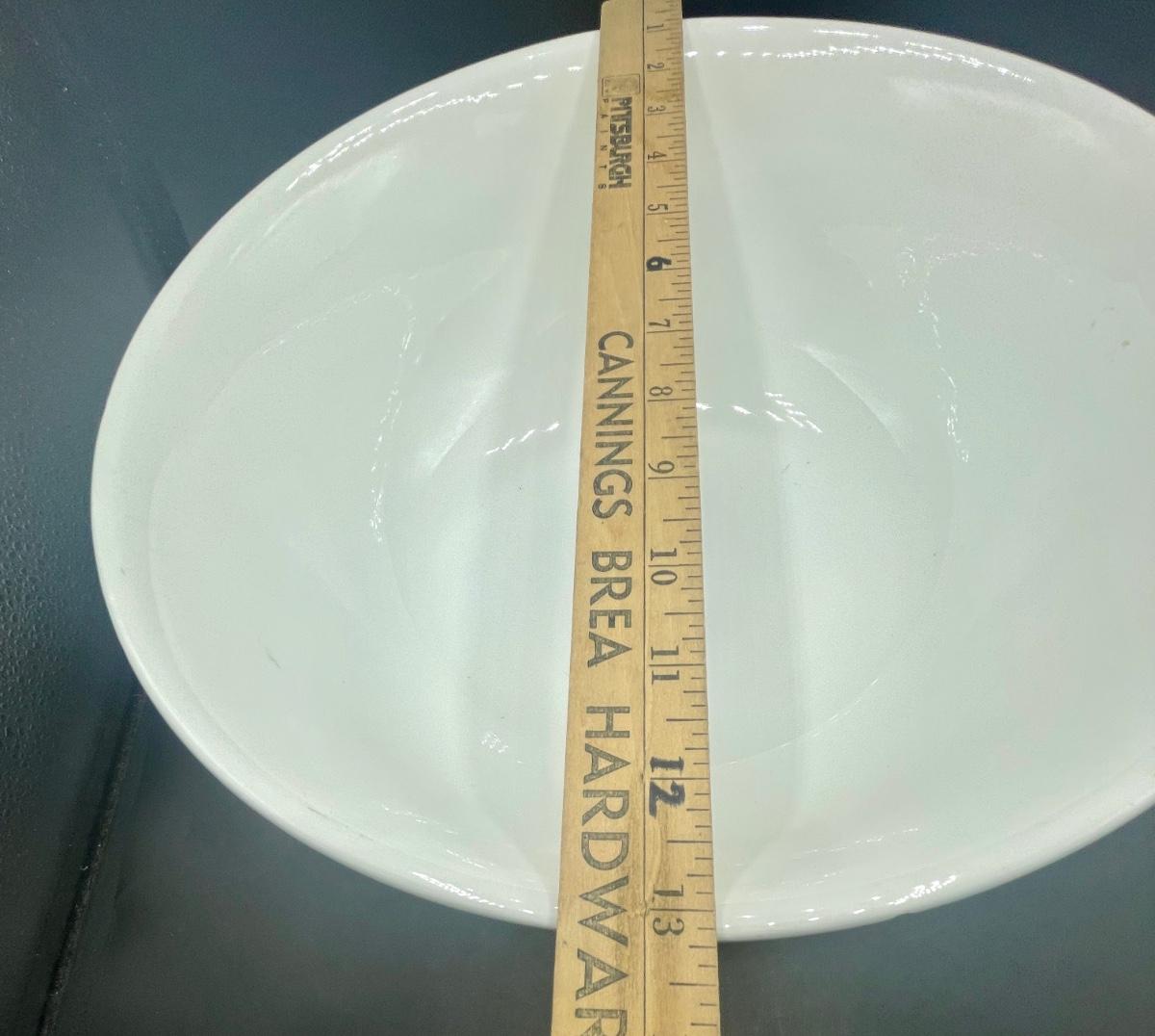 Approx. 13” across, 2 small chips in the rim (see photos). By ggggg