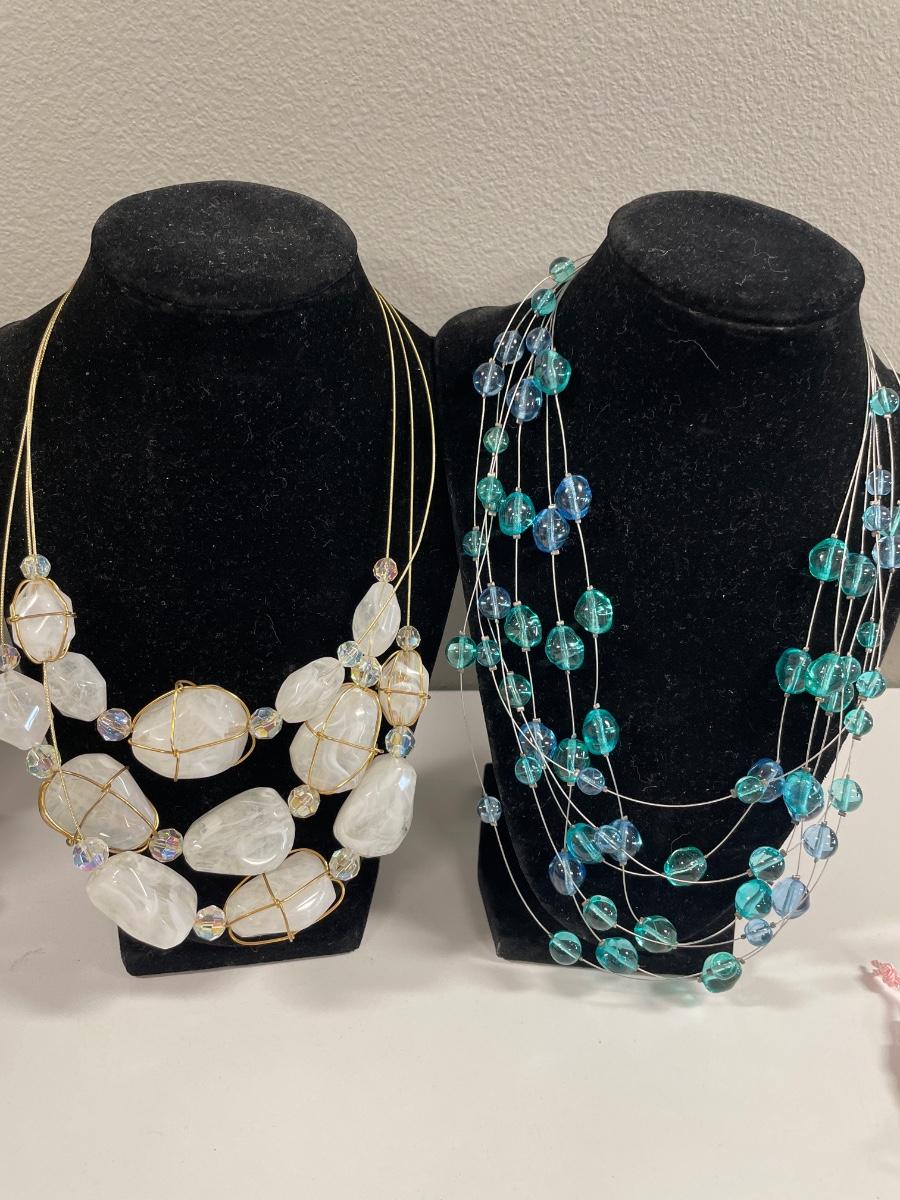 Large white stone Joan Rivers & blue/green Joan Rivers necklace