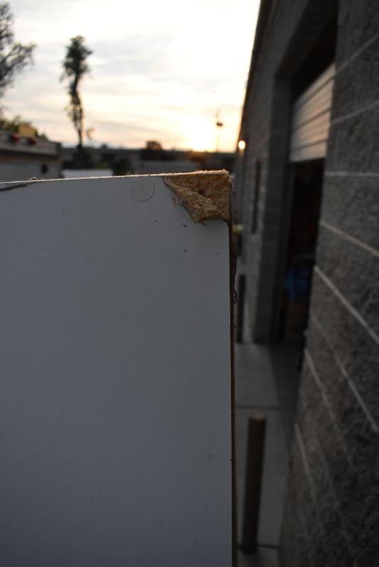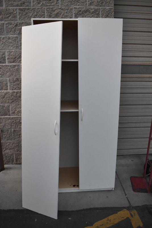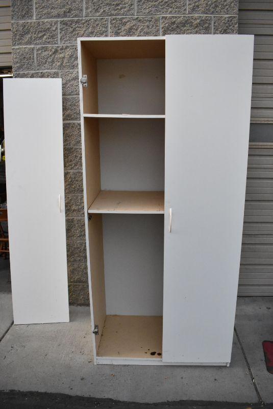Large White Storage Cabinet with 2 Shelves, Broken Door