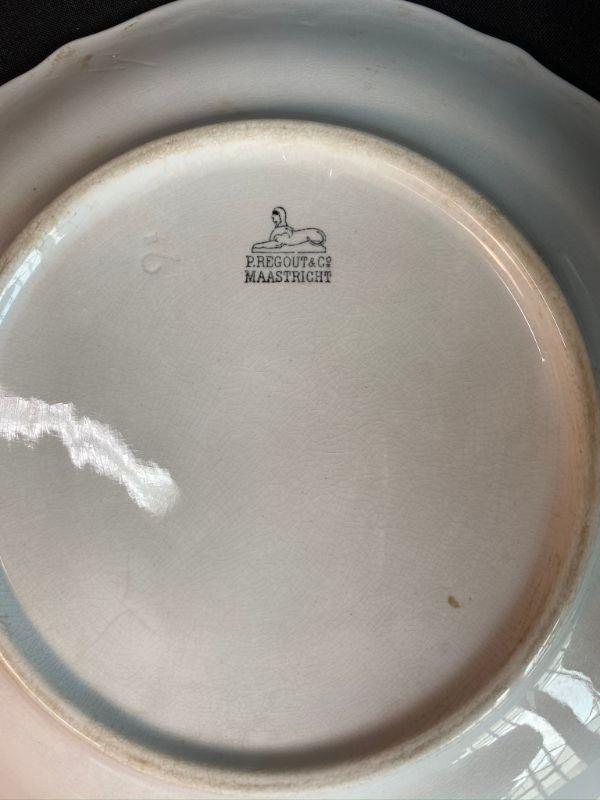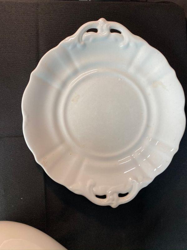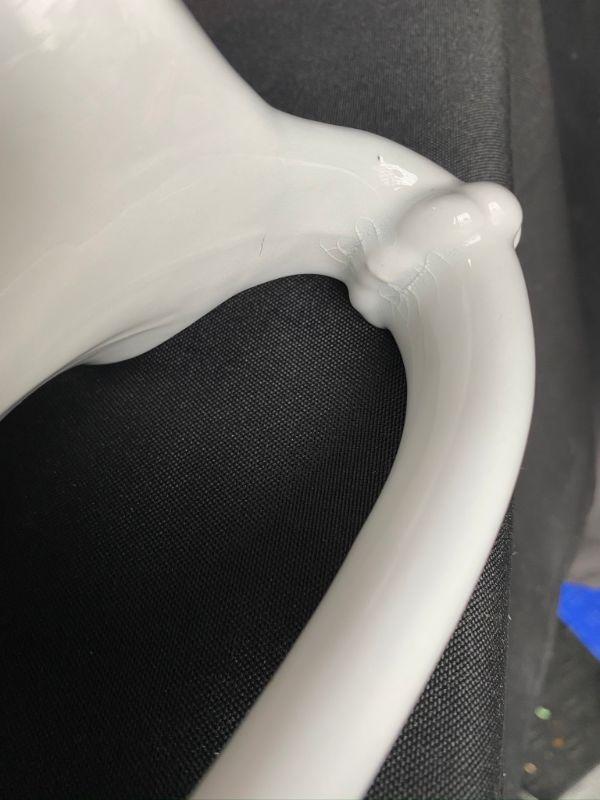Large water pitcher with charger plate. They are made by 2 different makers but look nice together. There is crazing but no chips.