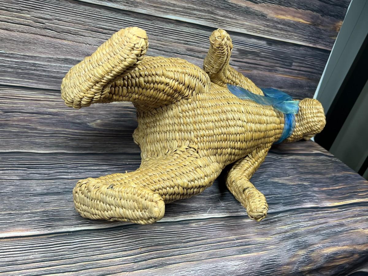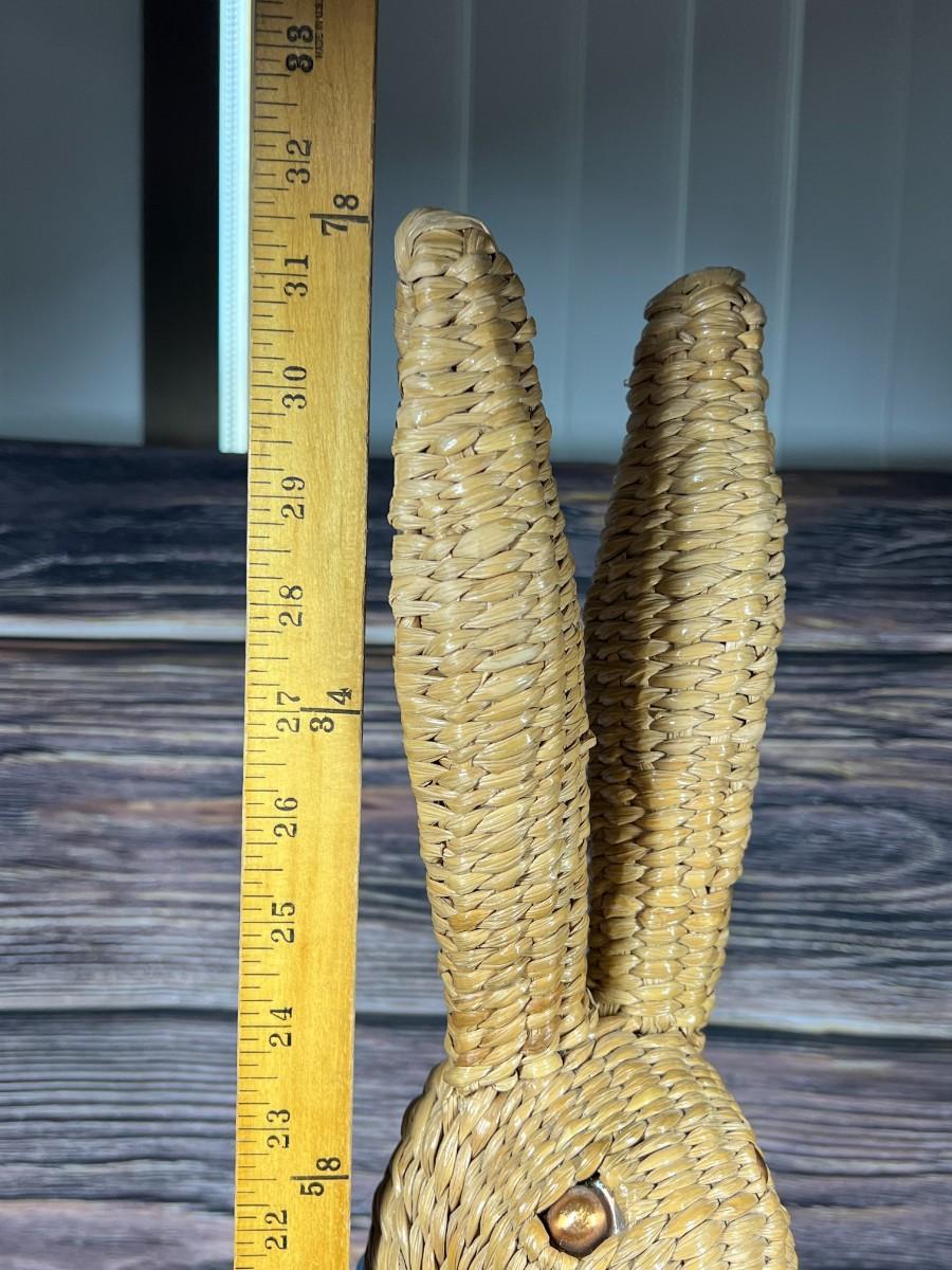 Very large wicker Easter bunny. Weighted so it stands nicely. In good condition, about 32" tall.
