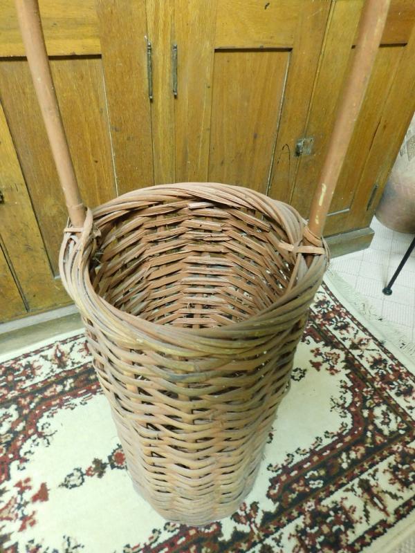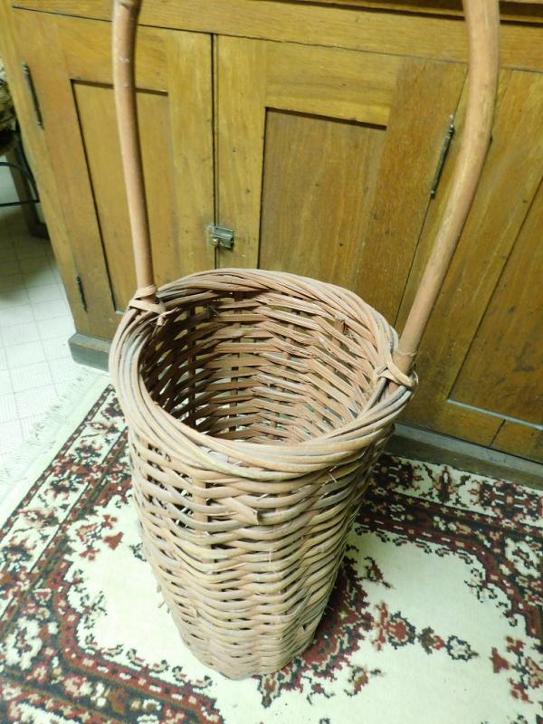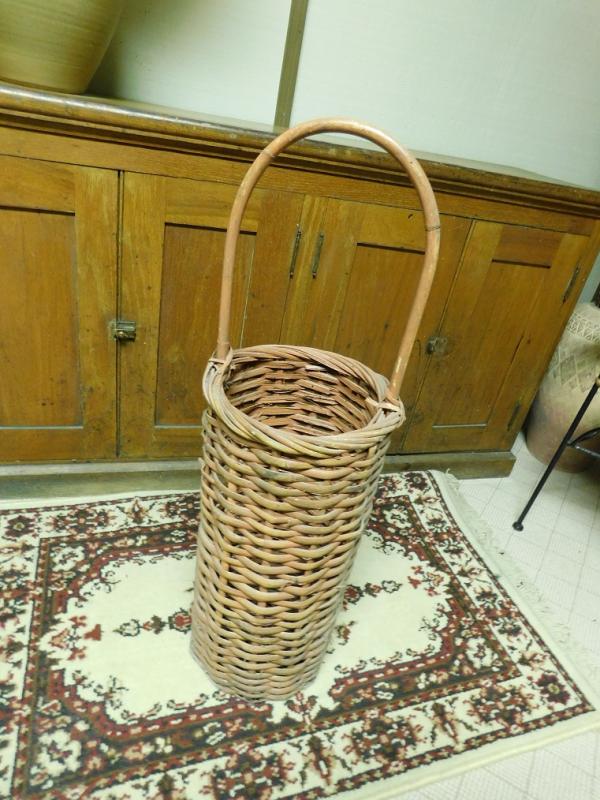 Large Wicker Weave Floor Basket with Bent Handle in good condition
