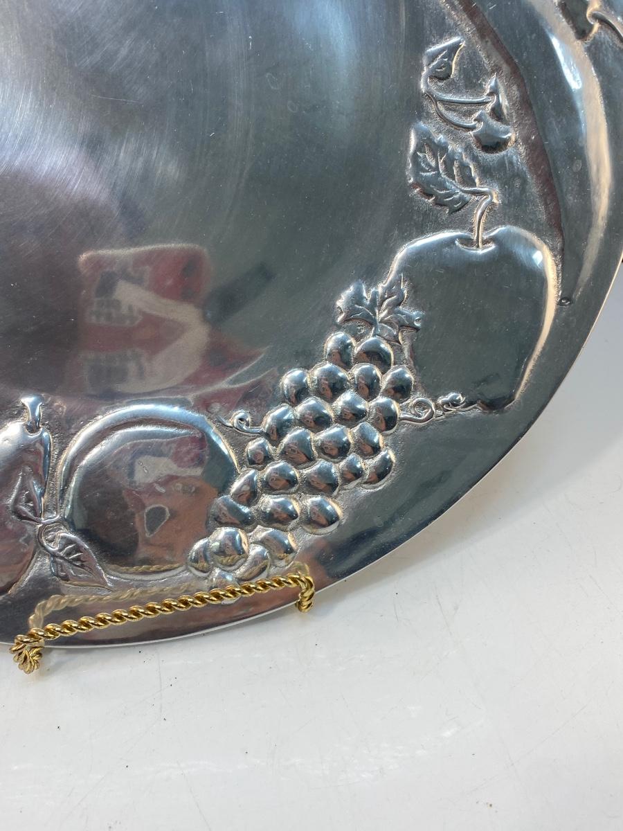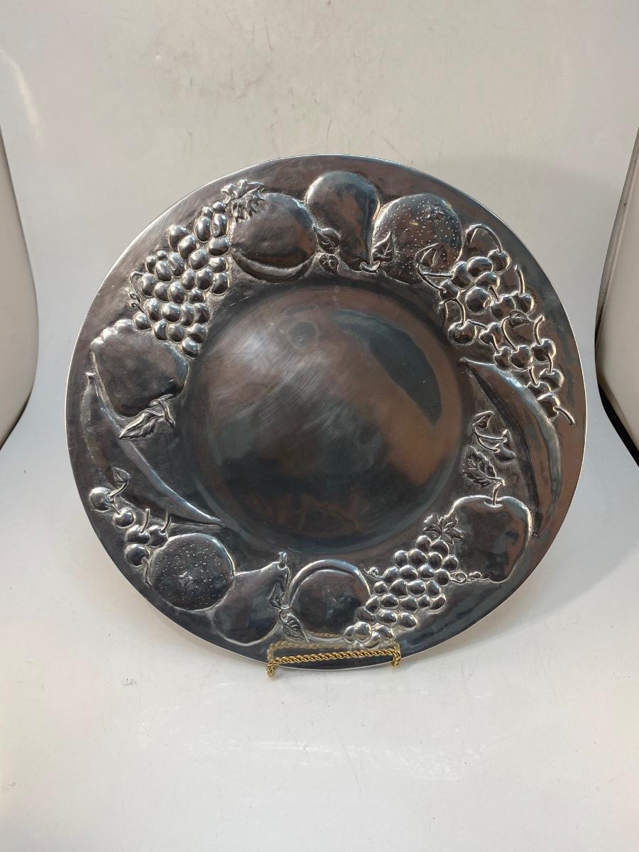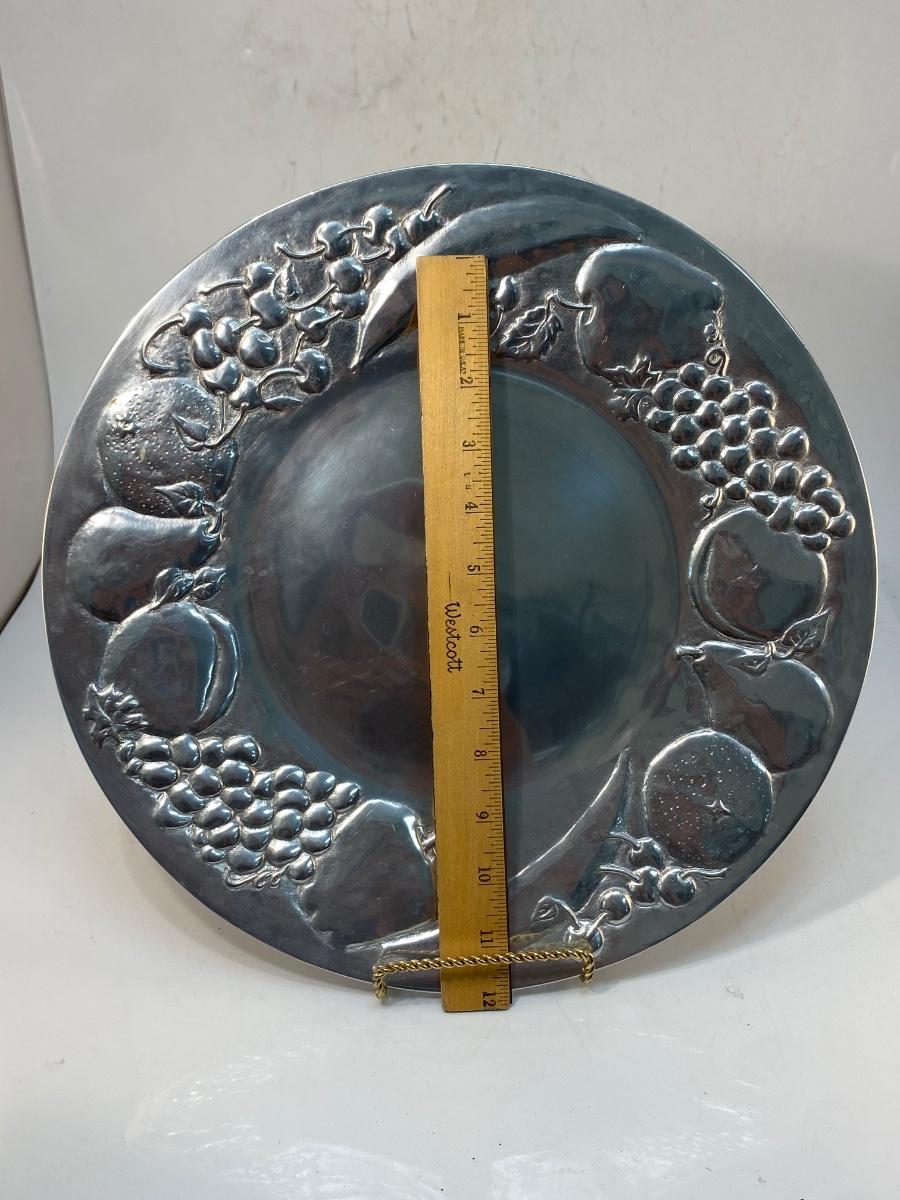 Large Wilton Pewter Metal Fruit Embossed Stamped Round Charger Serving Tray Plate Platter