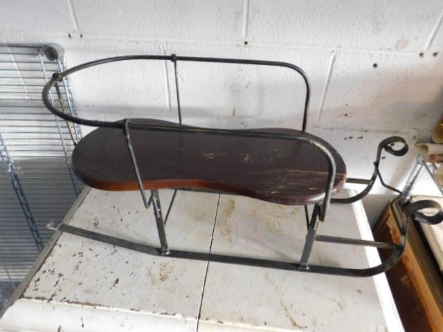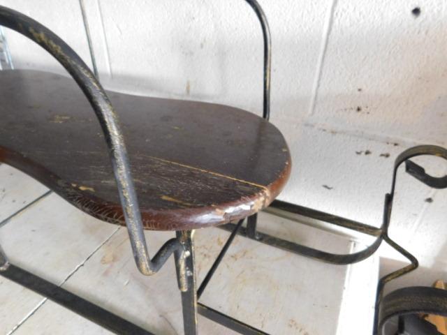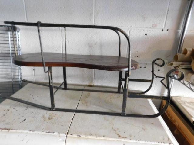 Large Wood and Metal Horse Sled Plant Holder or Decorative Item 30"x14" has small split on seat as shown