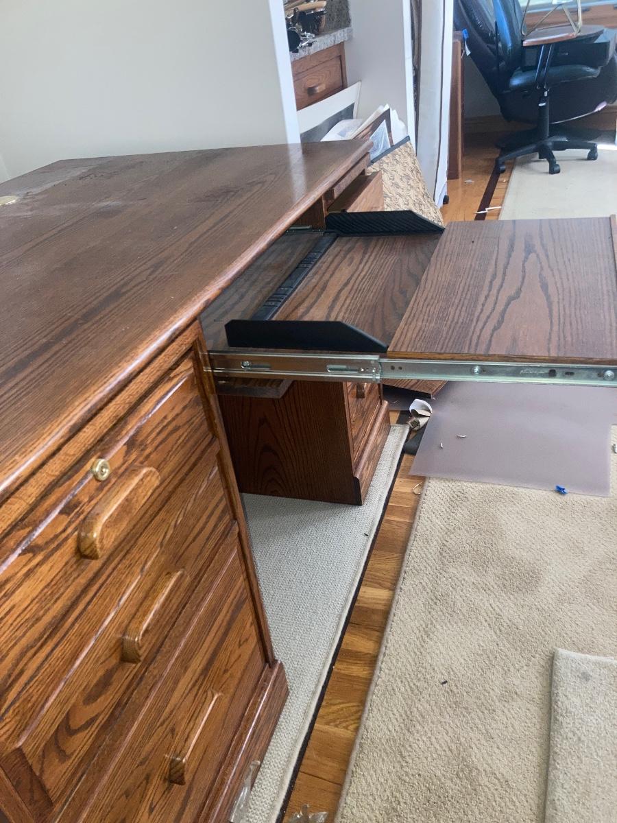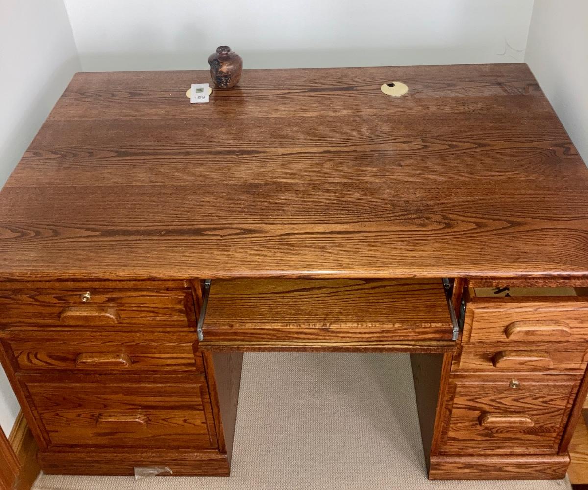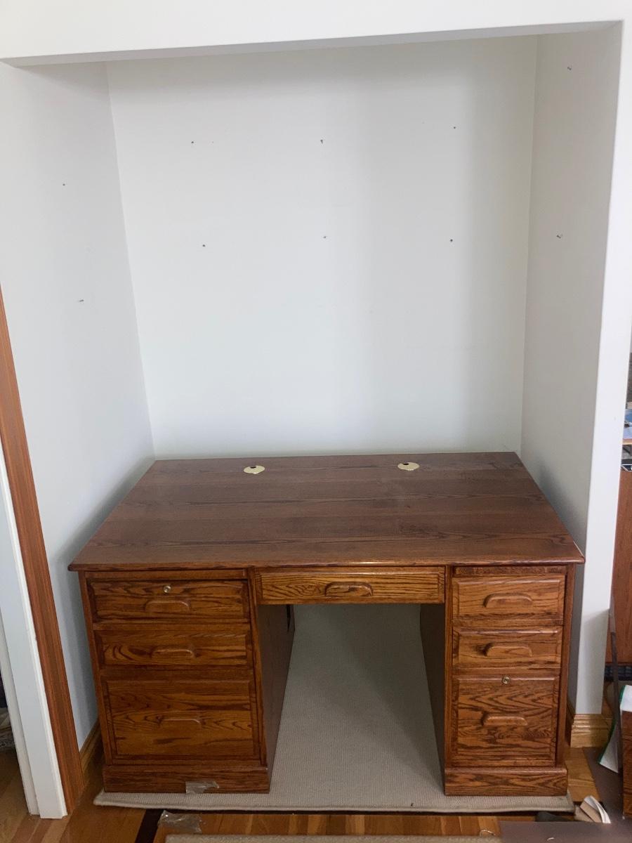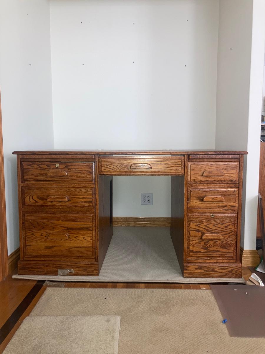 Very large wood desk measuring 52”w x 32”d x 36”h