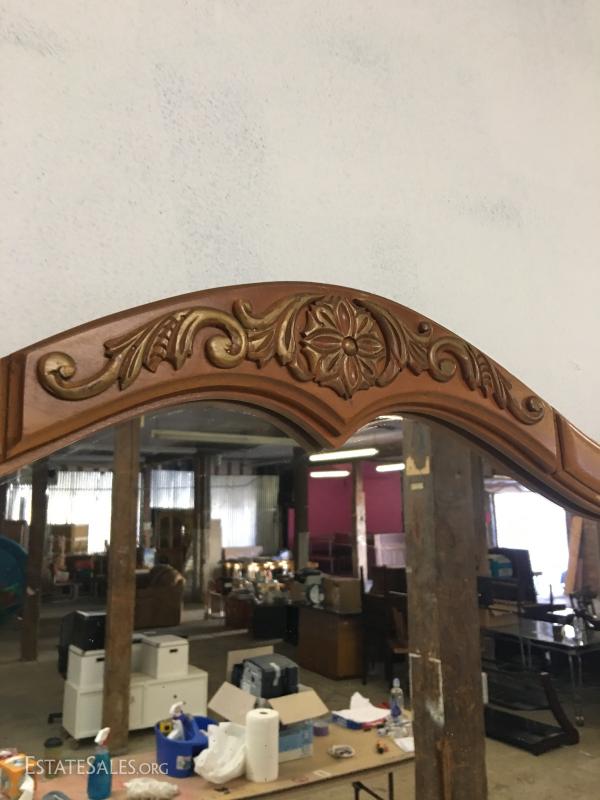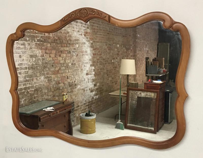 Large wood framed mirror French Provincial style 46”x33”. Lot#