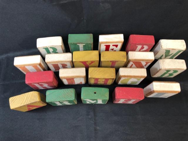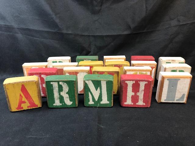 Wood Letter Blocks. 20 blocks with some repeated letters. Great for craft or decor projects. About 3" square.