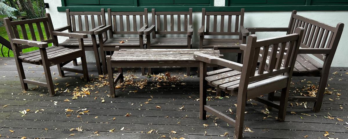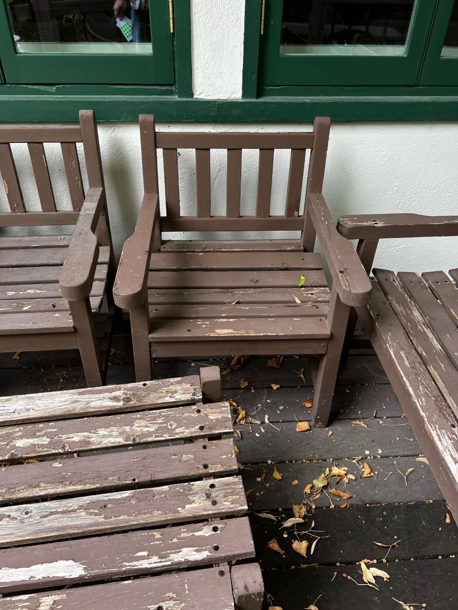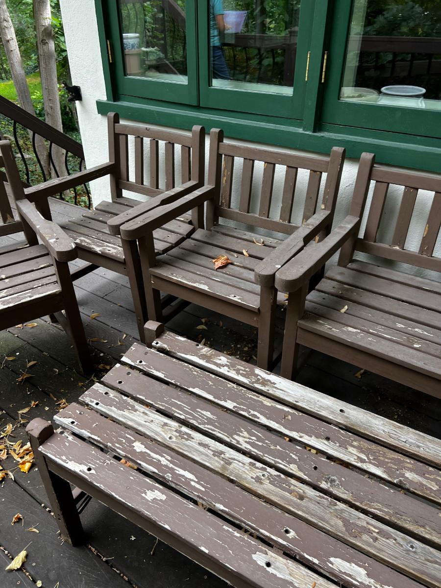 USED! Worn Shows Wear NEEDS PAINTED AGAIN. MAY NEED REPAIRED?!?! Bench, Chairs, Table! Flaking Paint!