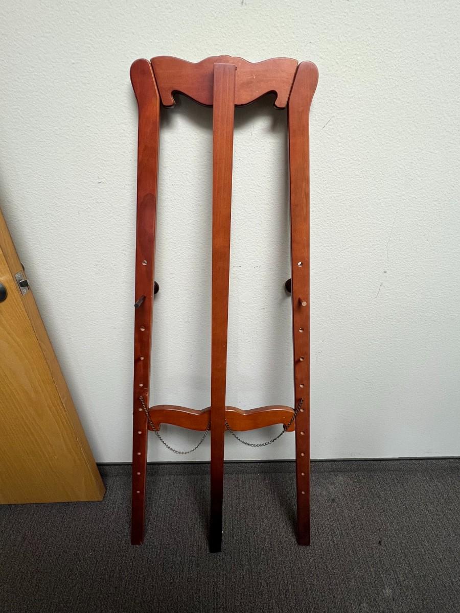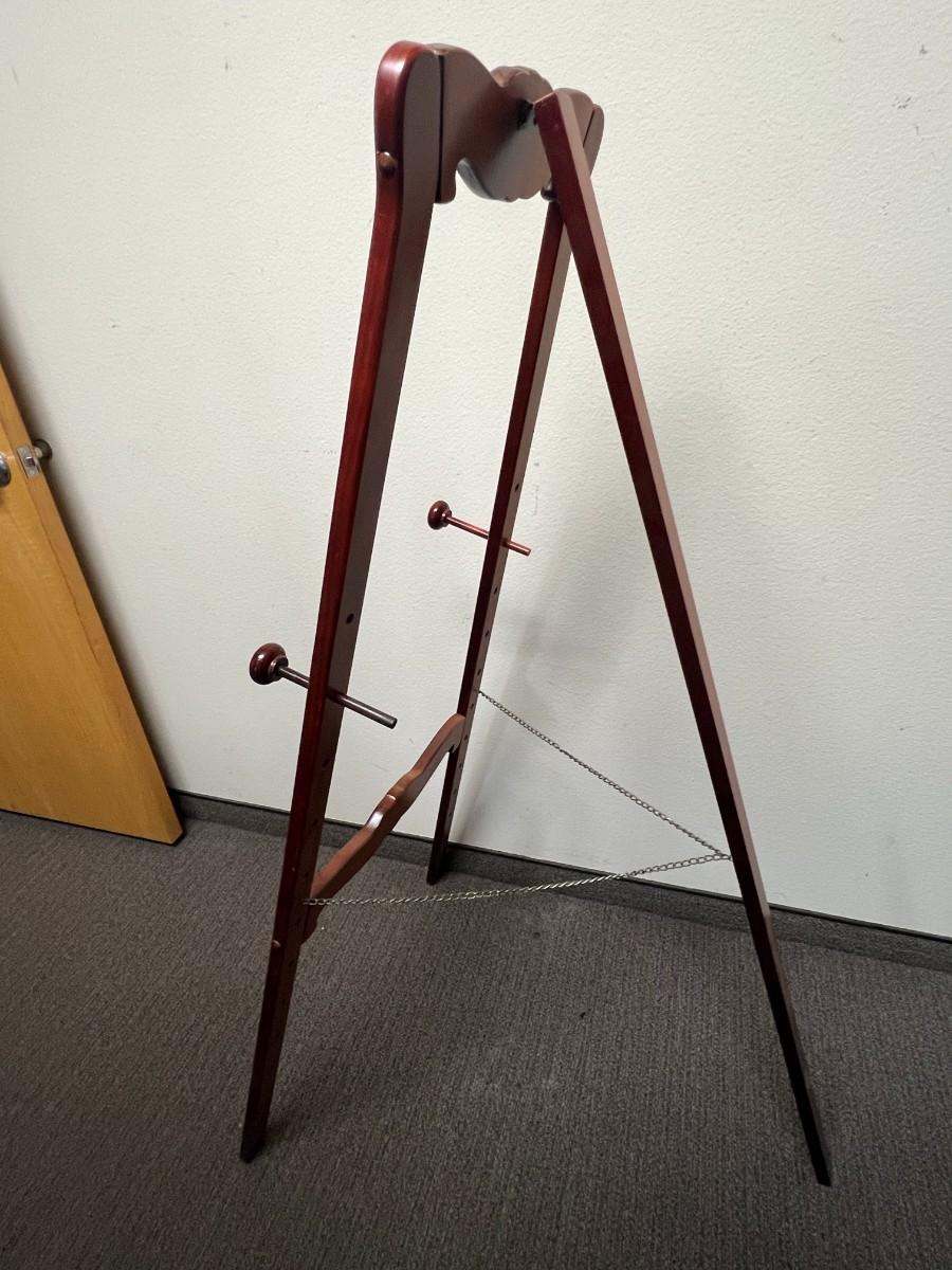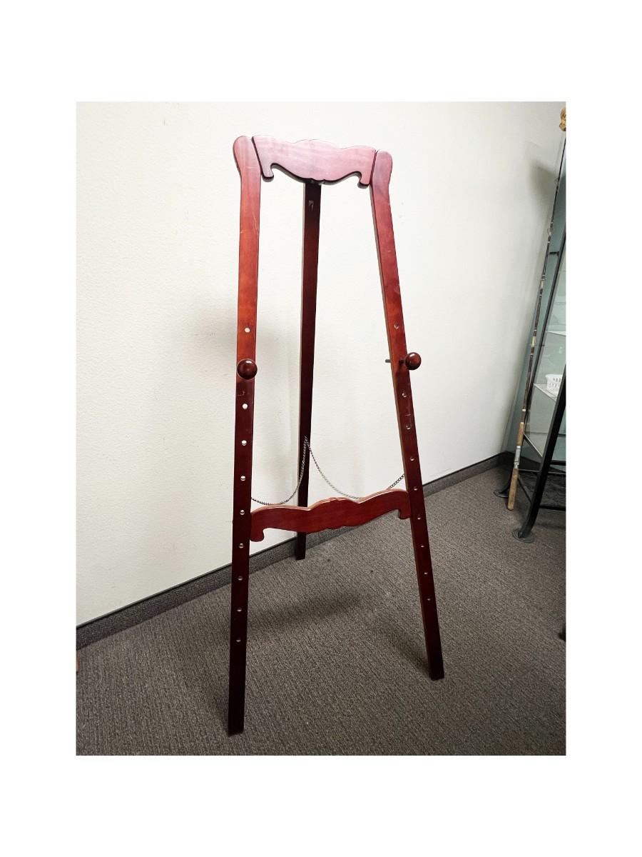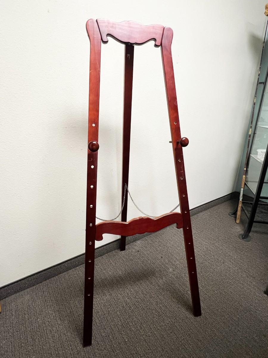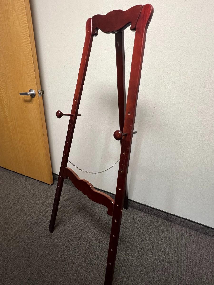 There is no significant damage to the wooden easel and is in overall good useable condition. Check pictures for more details and for sizing.