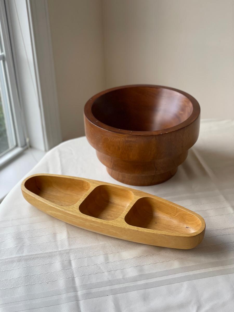 Large Wooden Bowl and Wooden Divided Serving Bowl