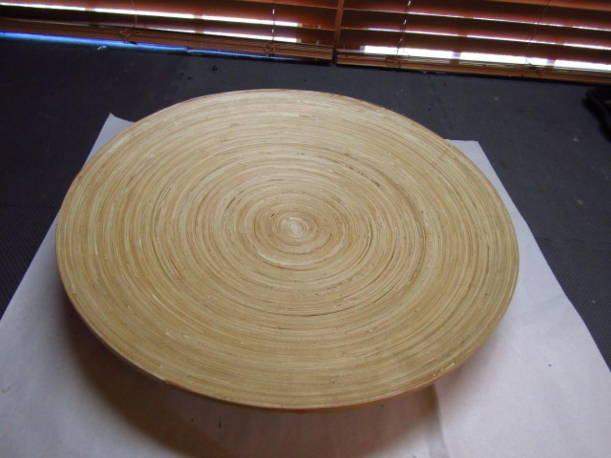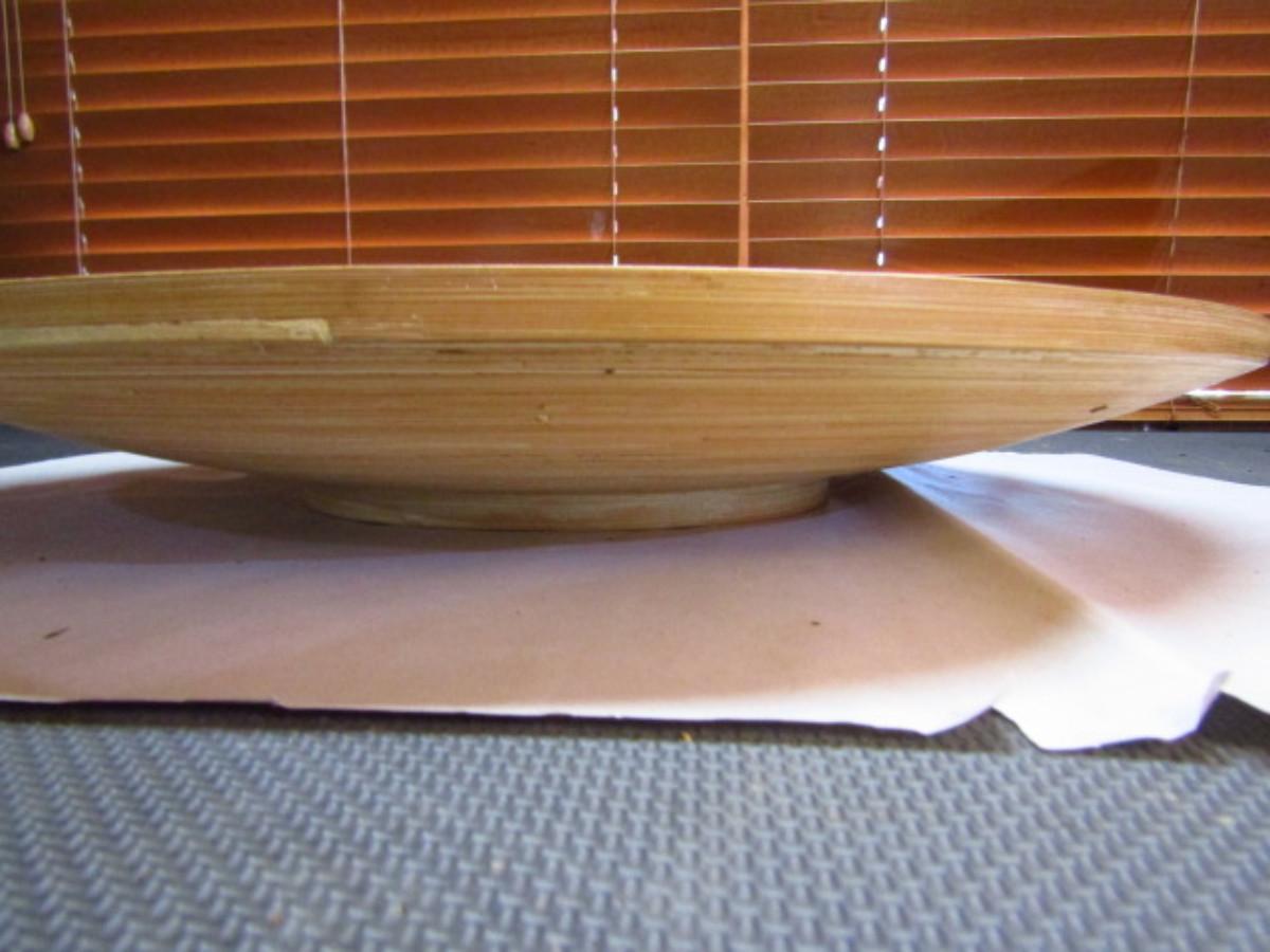 Large Wooden Centerpiece Bowl (G). Measures approx 23 1/2" in diameter.