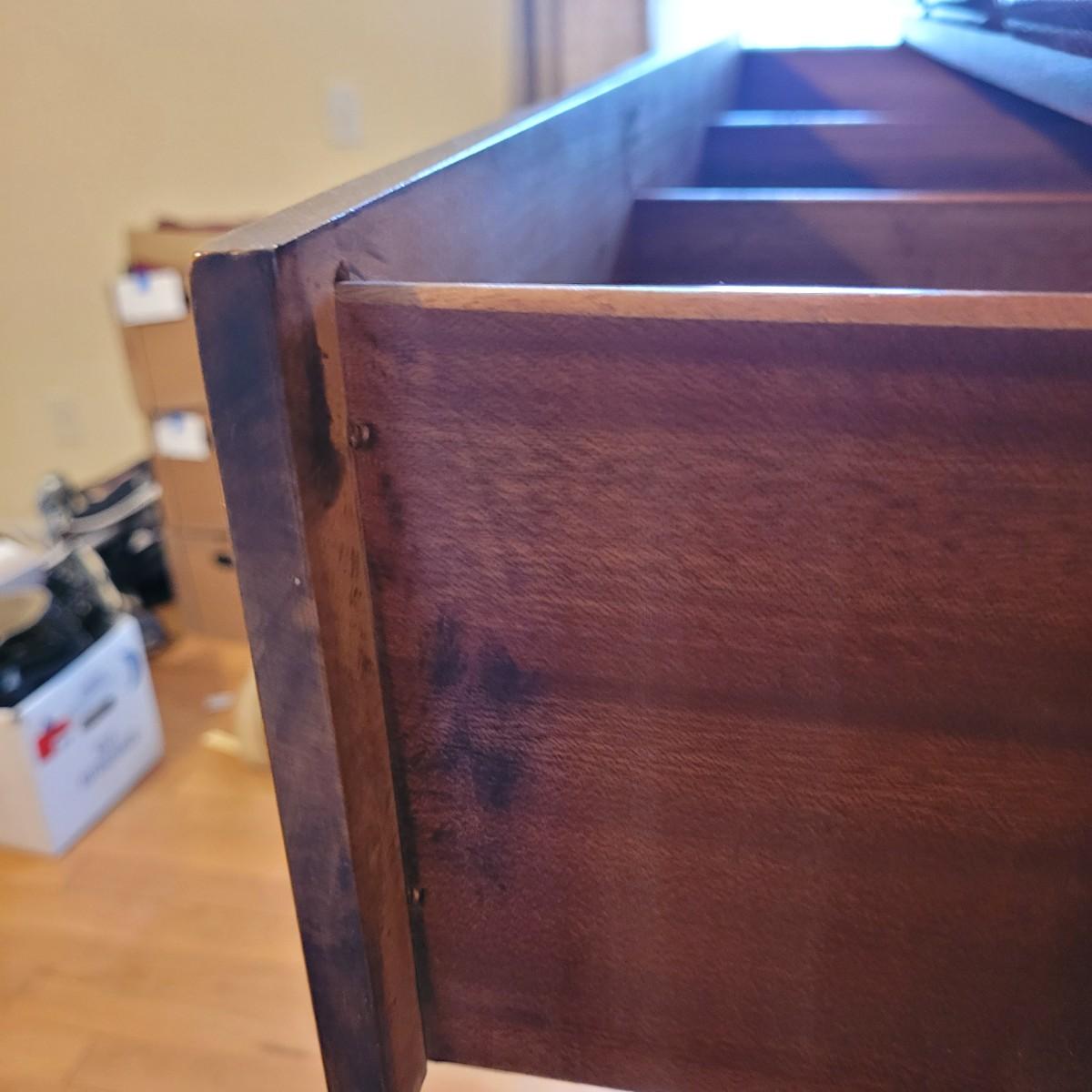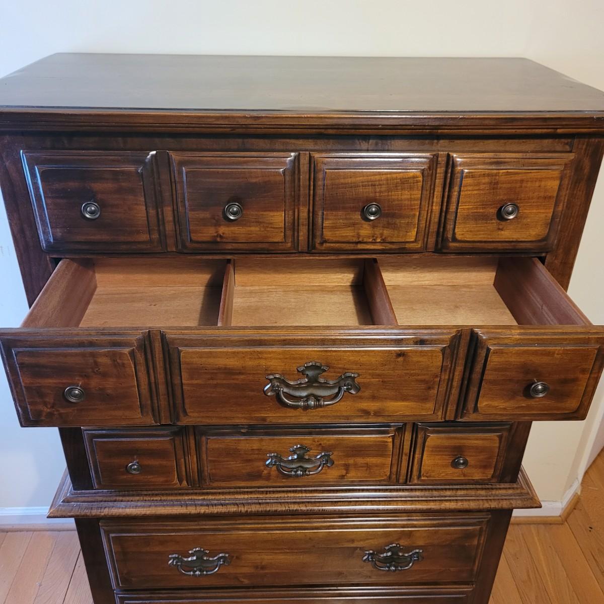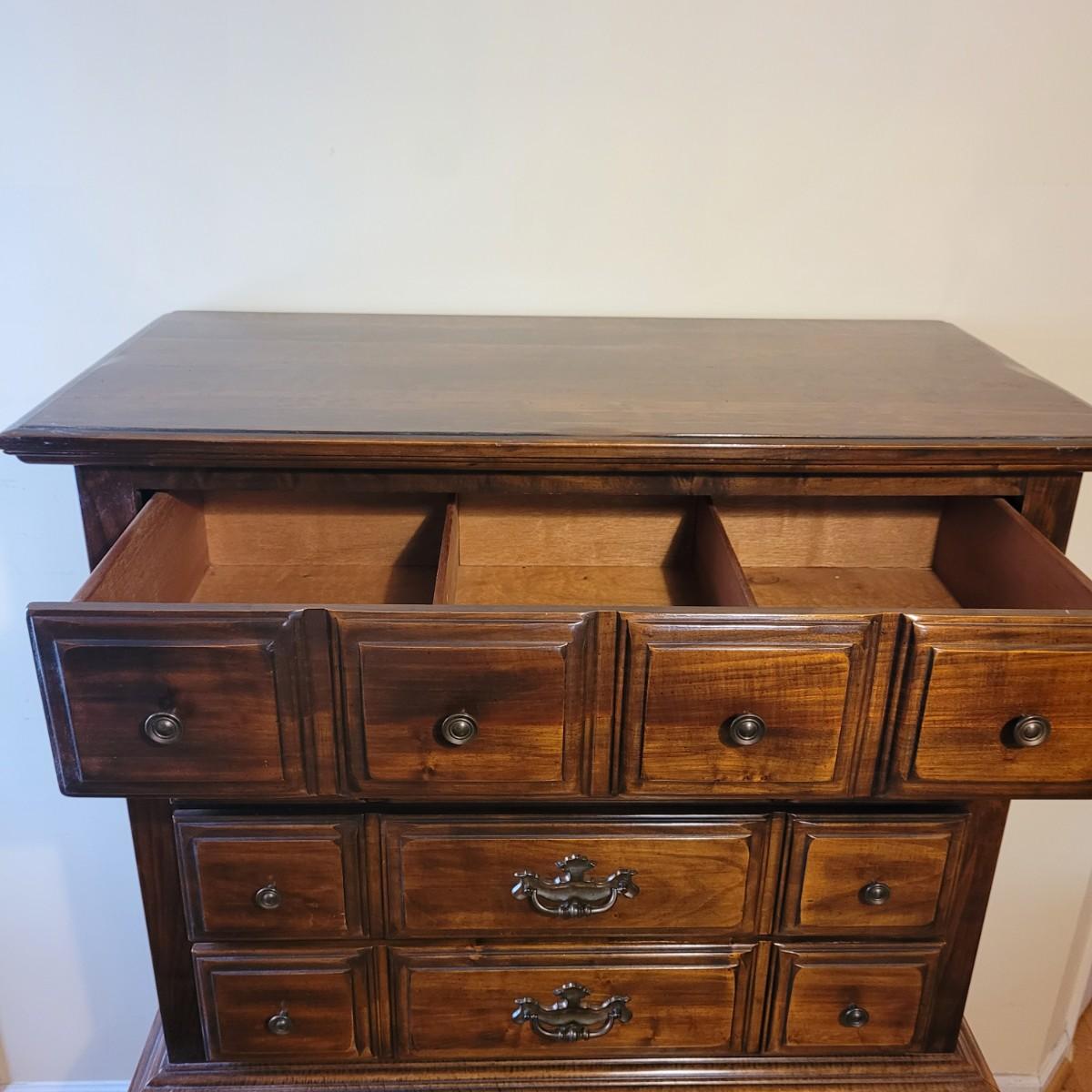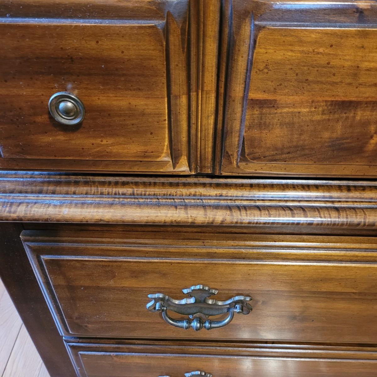 This matching furniture set includes a large six drawer dresser and a pair of three drawer nightstands. Dresser measures approximately 40” x 21” x 57.5”H and nightsands 25” x 16” 25.5”H. Local pickup only. Winning bidder must bring assistance to help move and load this item due to its weight and size.