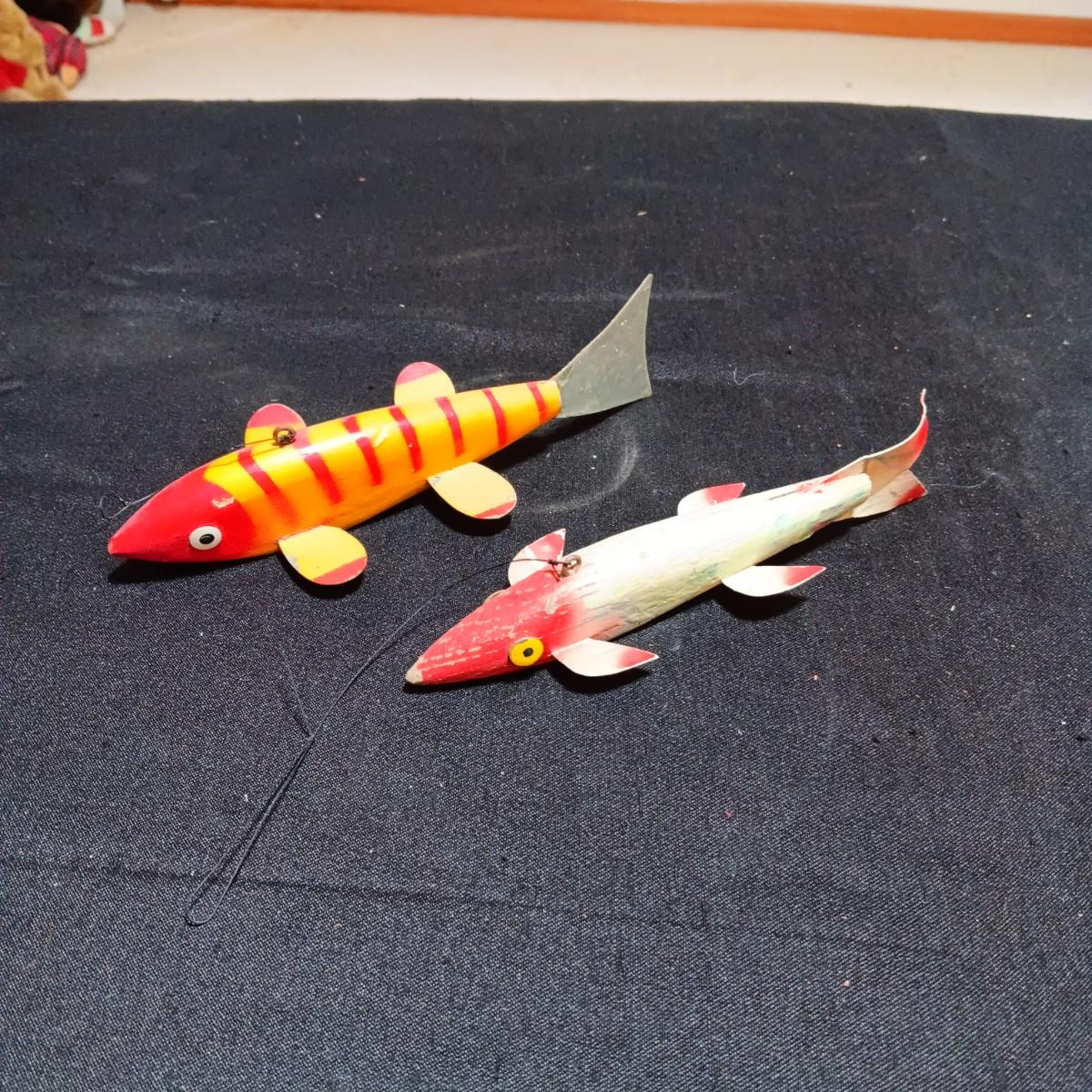 LARGE WOODEN FISHING LURES WITH TIN FINS