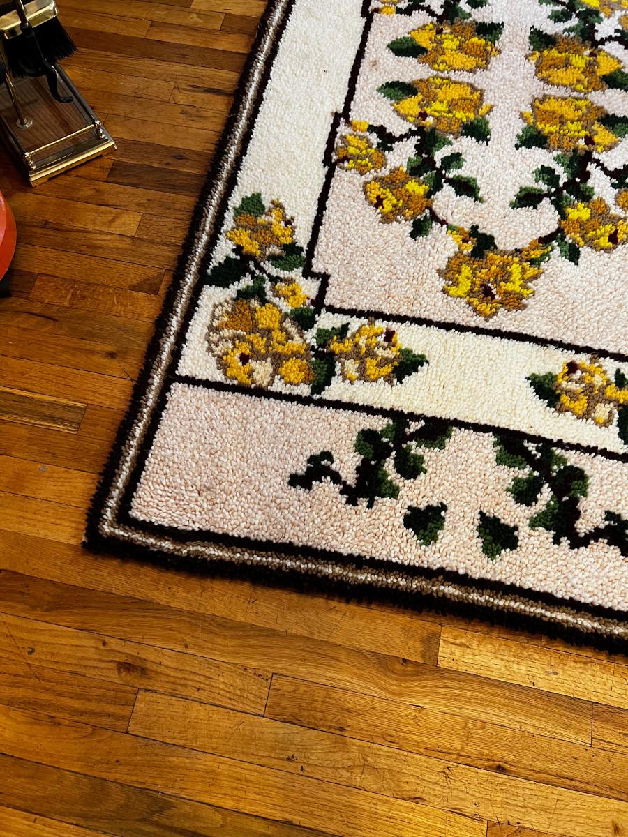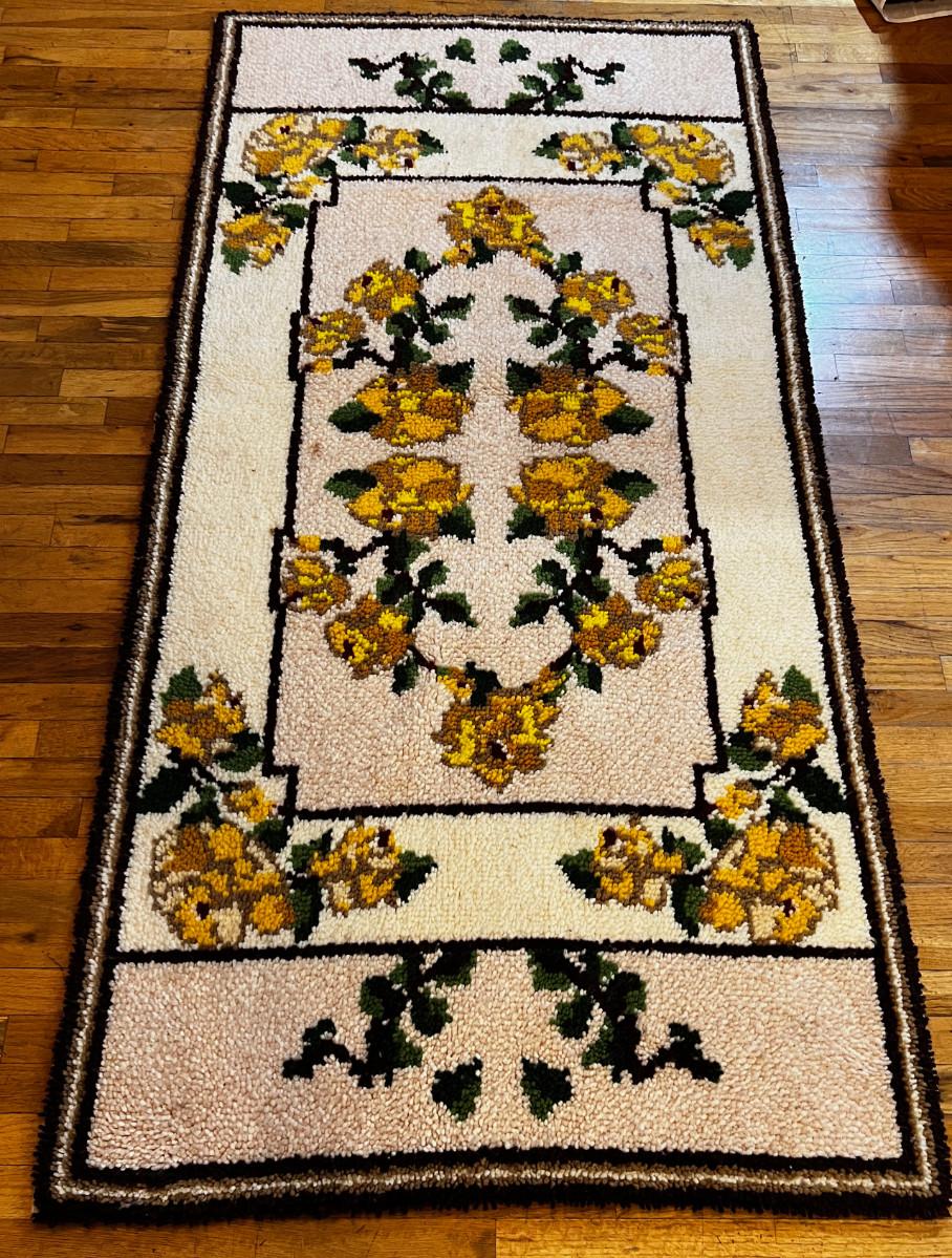 Large Yellow Floral Hook Rug, Hand Crafted