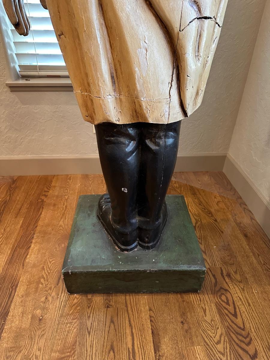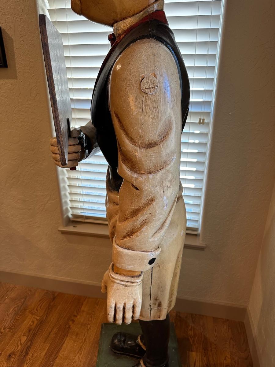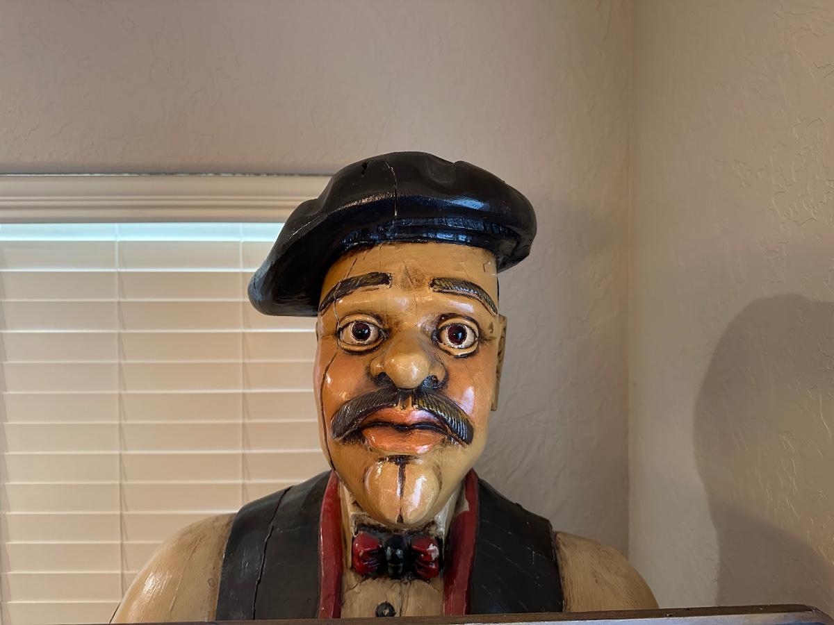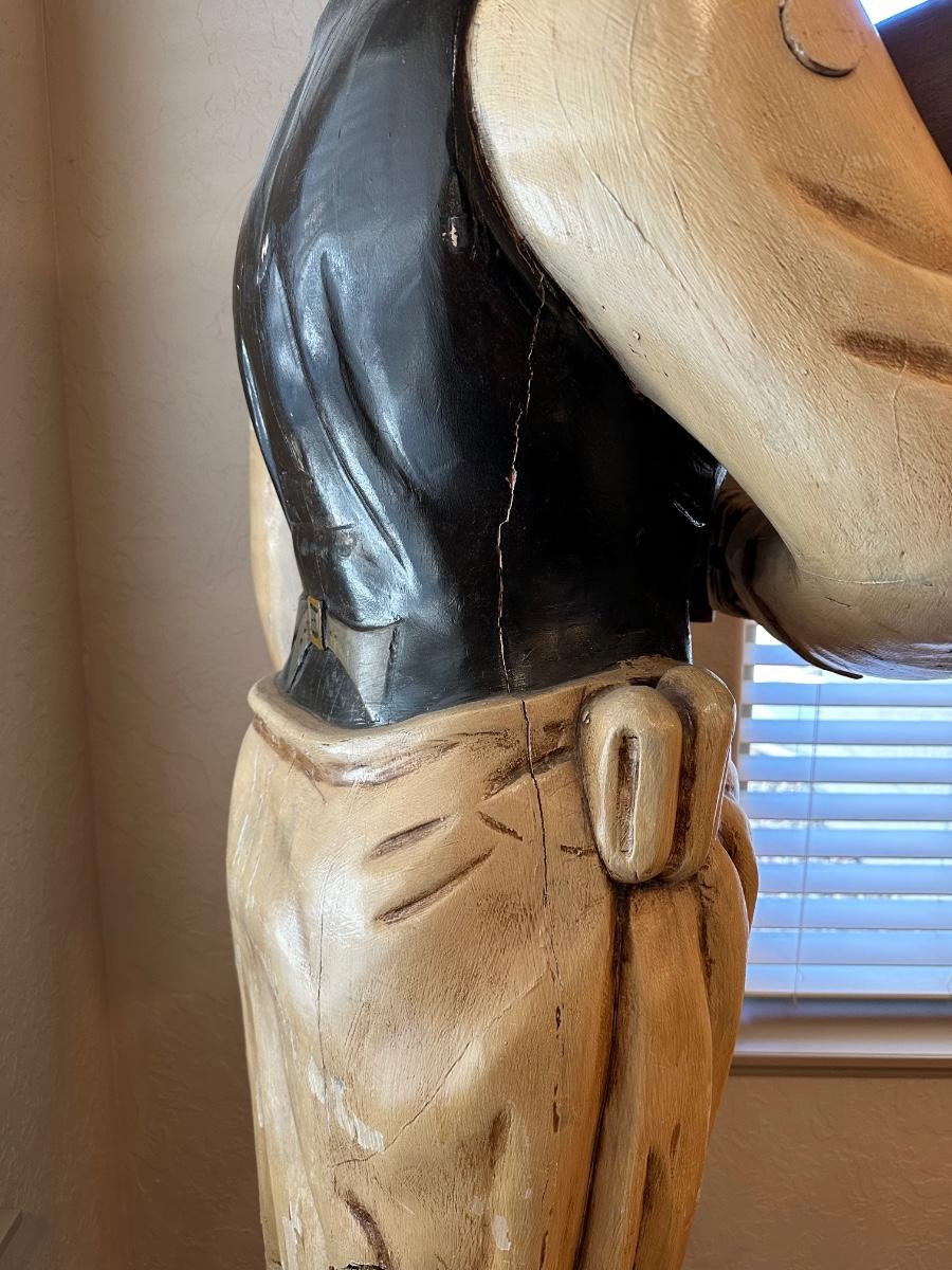 OVER 6' TALL, HE HAS SOME CRACKS BUT STRUCTURALLY SOUND AND A GREAT CONVERSATION PIECE