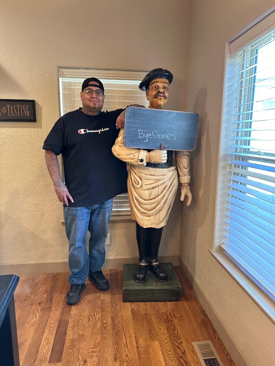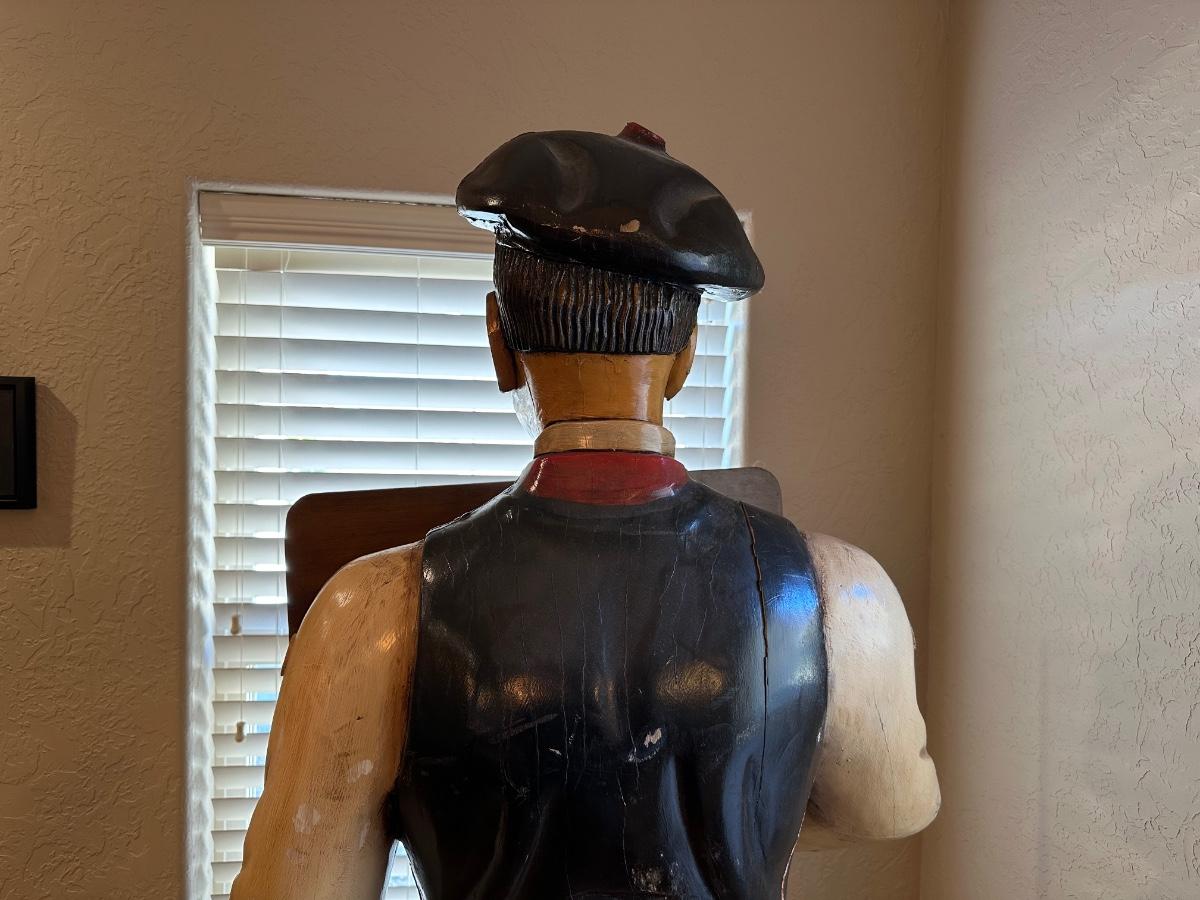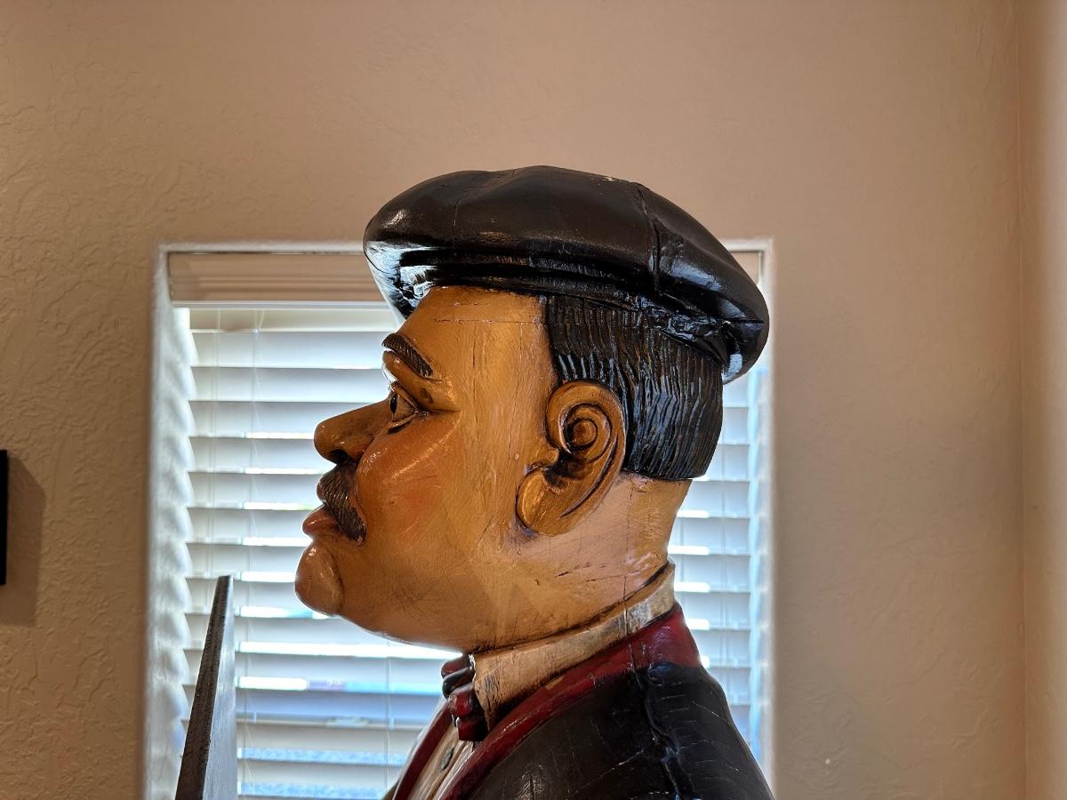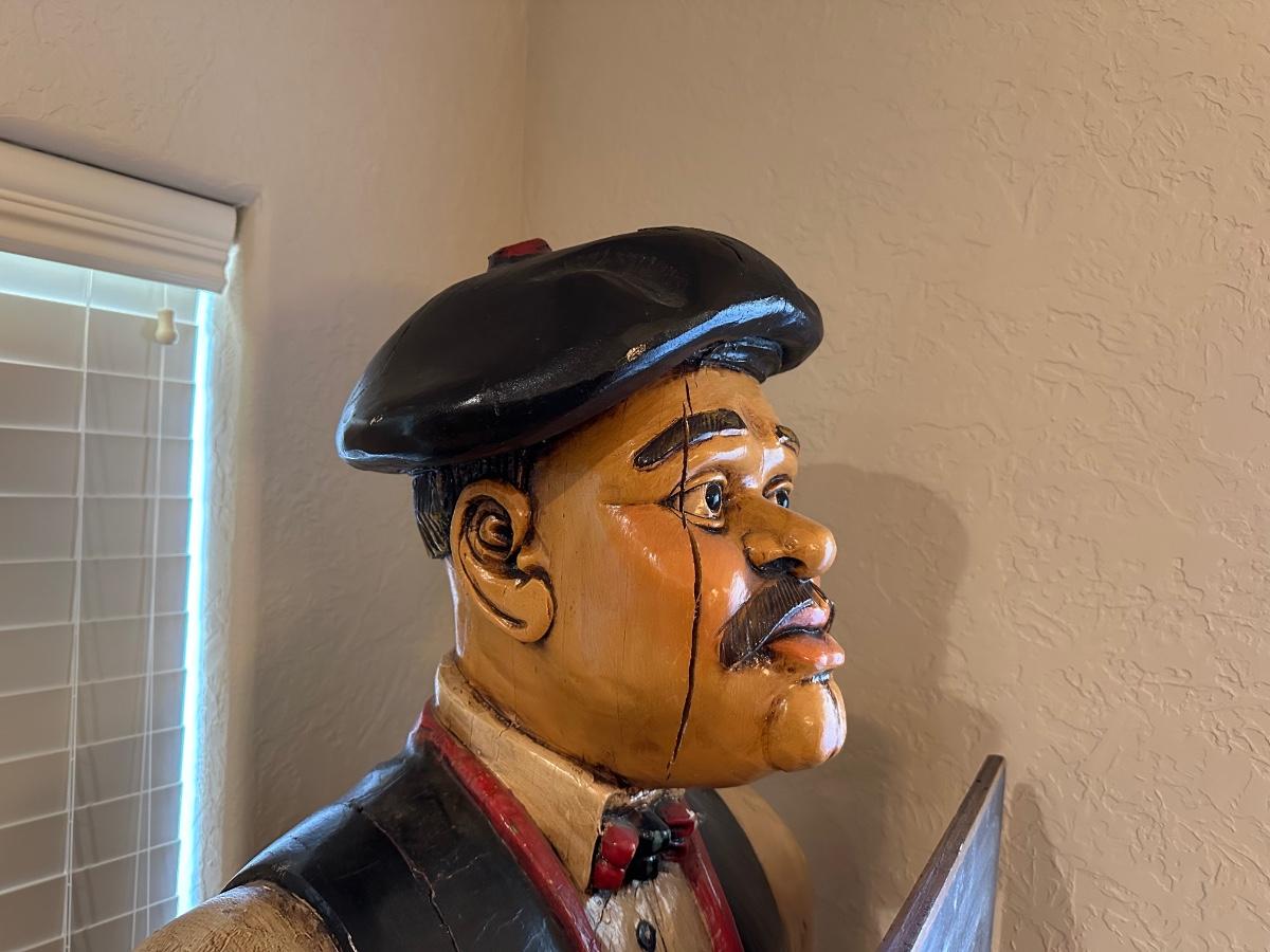 OVER 6' TALL, HE HAS SOME CRACKS BUT STRUCTURALLY SOUND AND A GREAT CONVERSATION PIECE