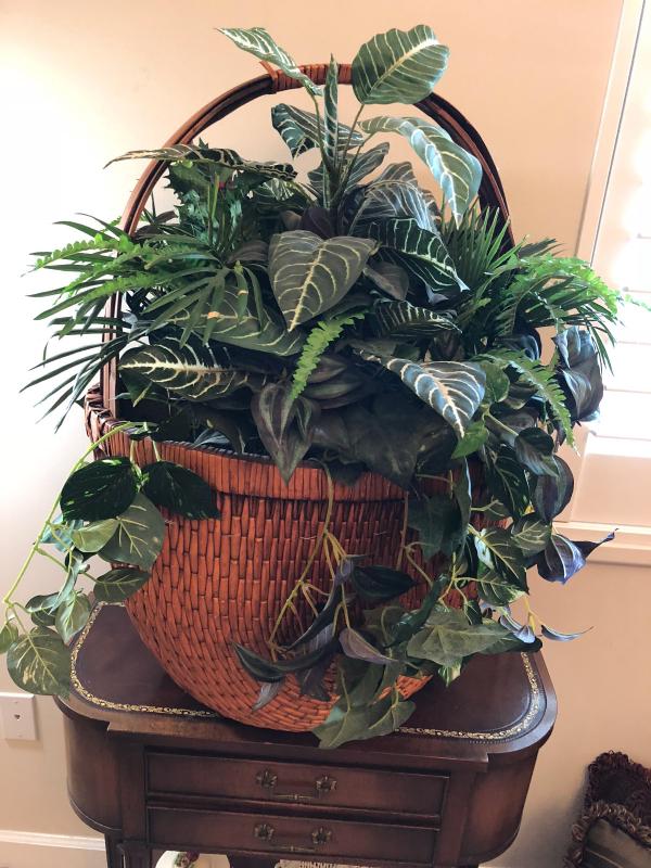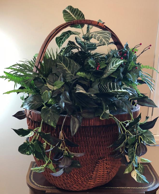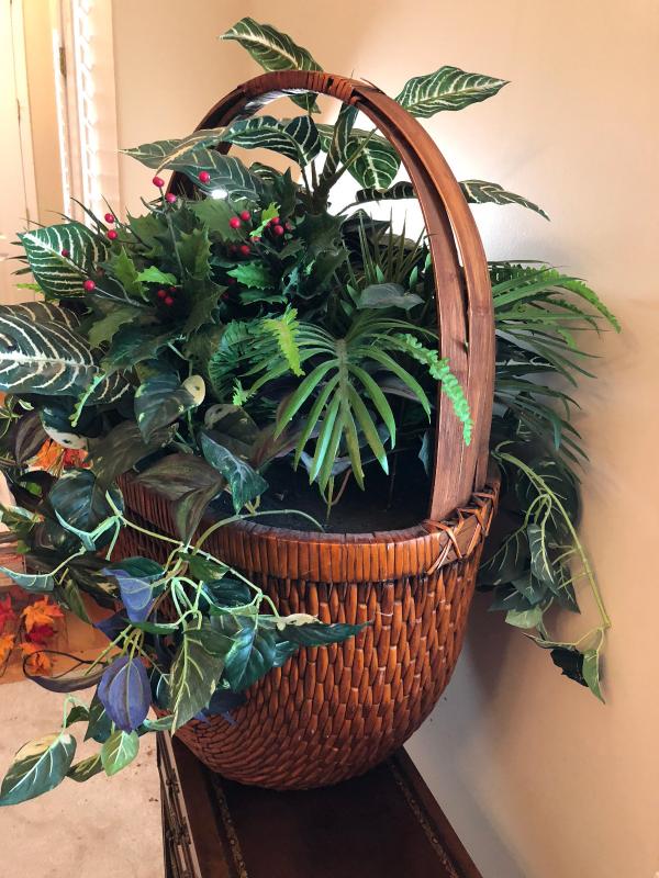 34" by 24" well done silk plant basket, clean.