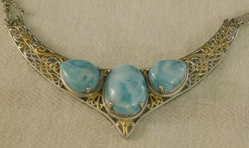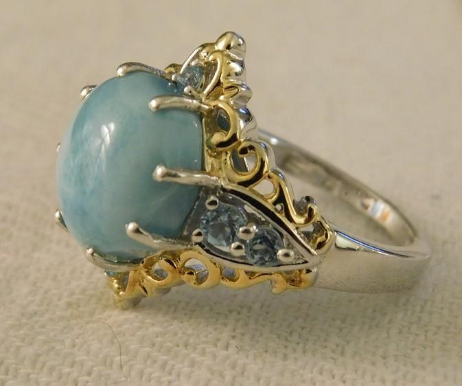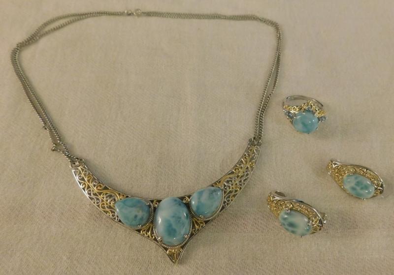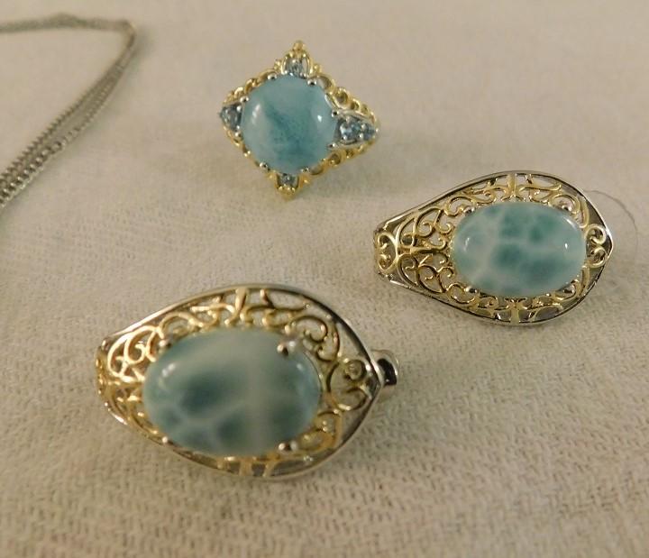 Larimar Necklace, Ring, and Earring Set 14kt Yellow Gold Over Sterling