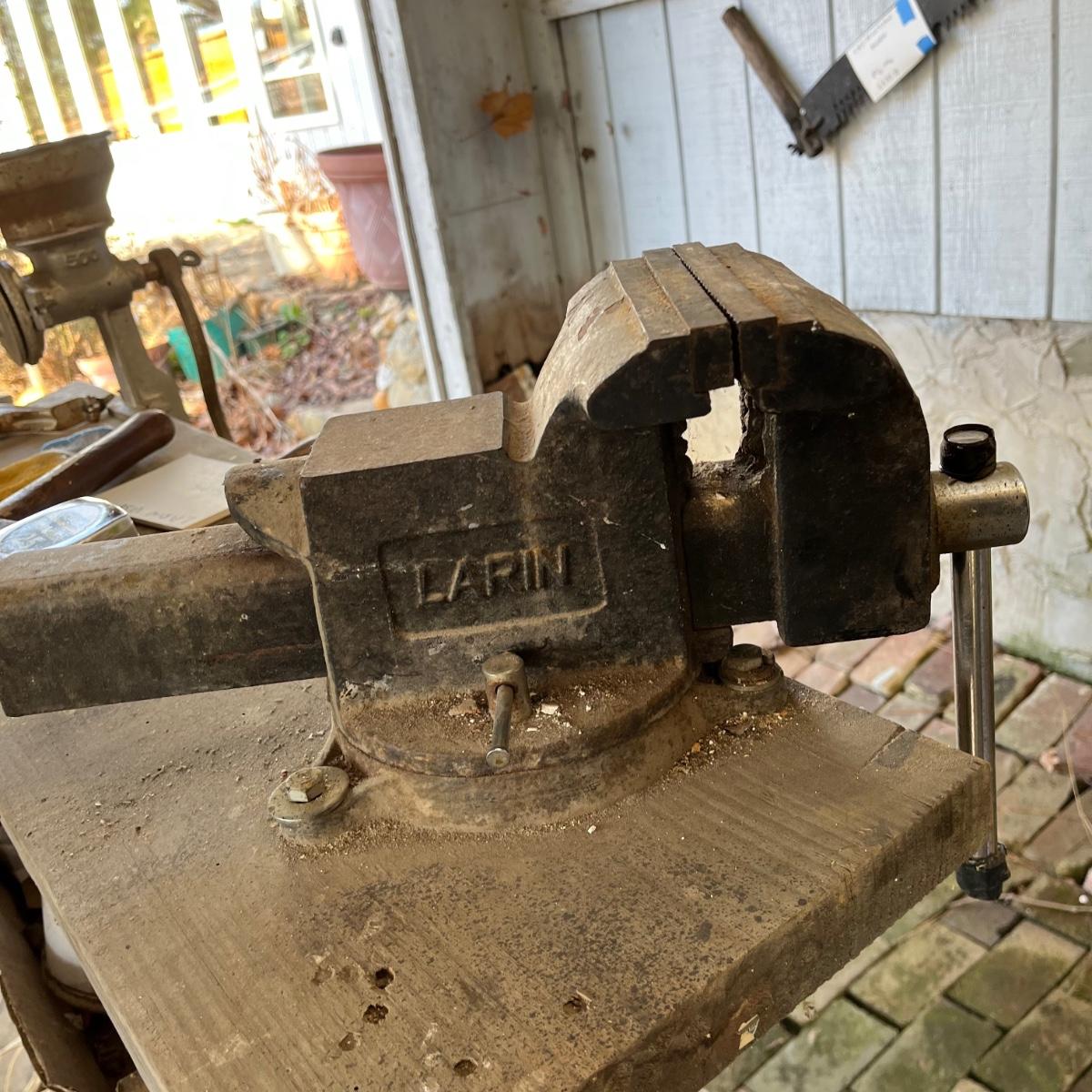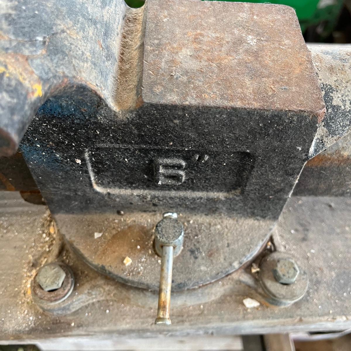 Lot includes a Larin 6” vise. Vise will need to be removed from bench by winning bidder. Vise measures 6” x 16” x 17” when closed.