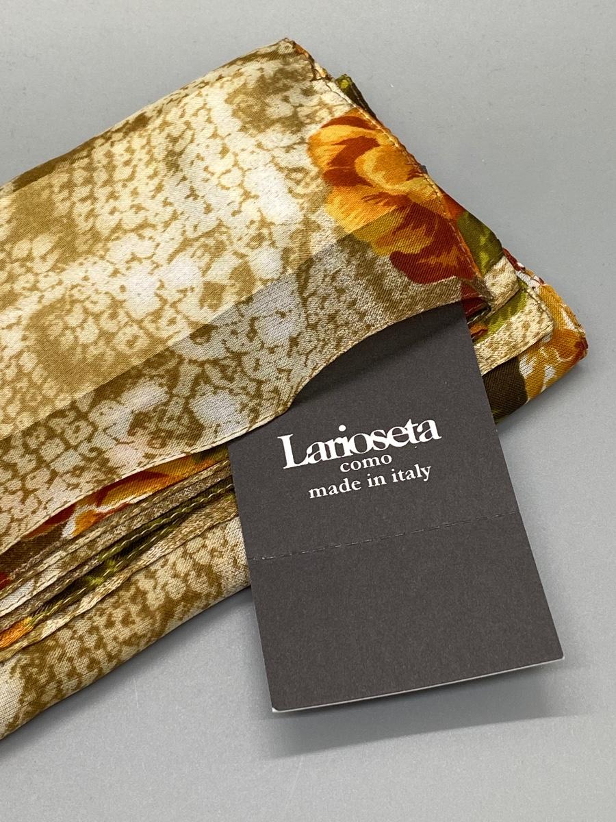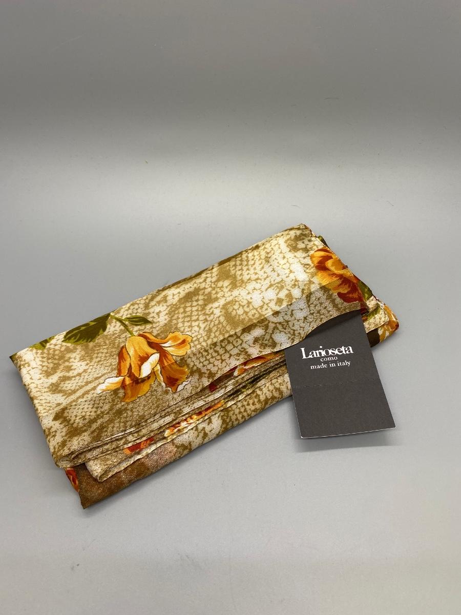 Larioseta Italian Floral Scarf, New with Tag. Has a reptile print with orange floral design. Long and narrow, great neck scarf.