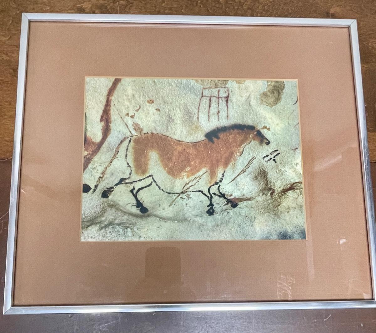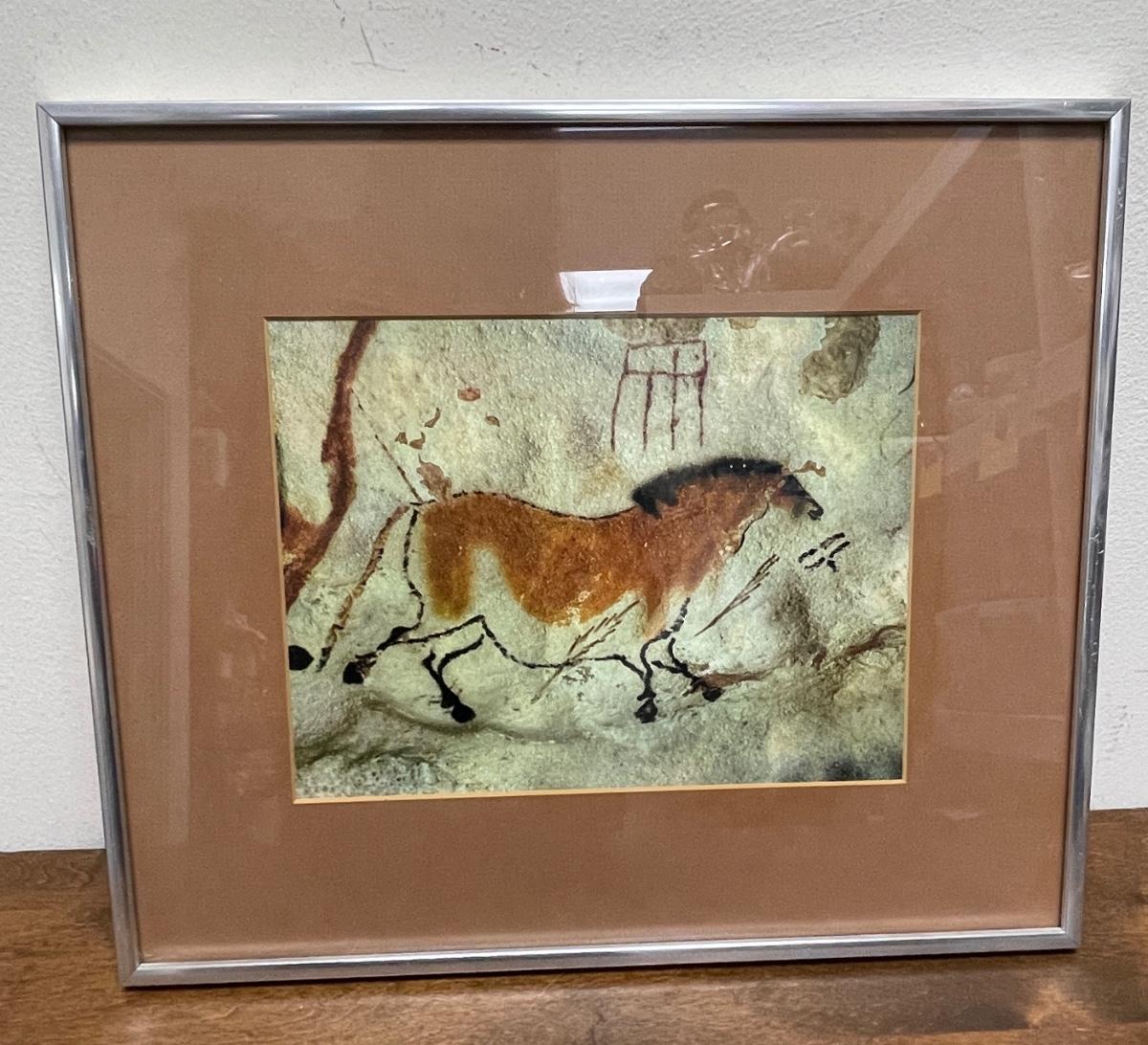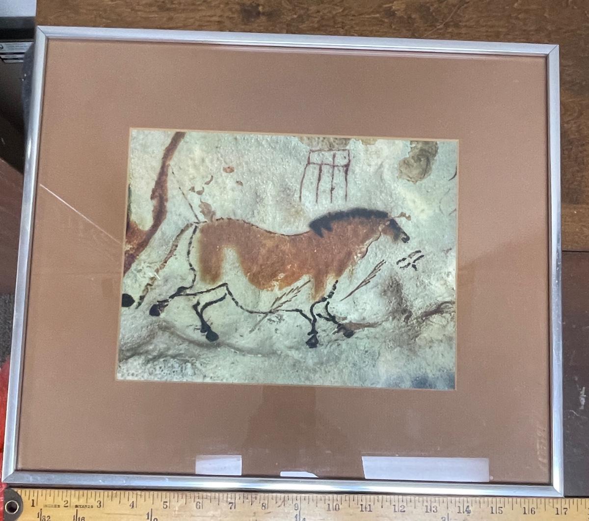 Copy of the image on a cave wall in France, estimated at over 17,000 years old. Nicely framed and matted modern version.