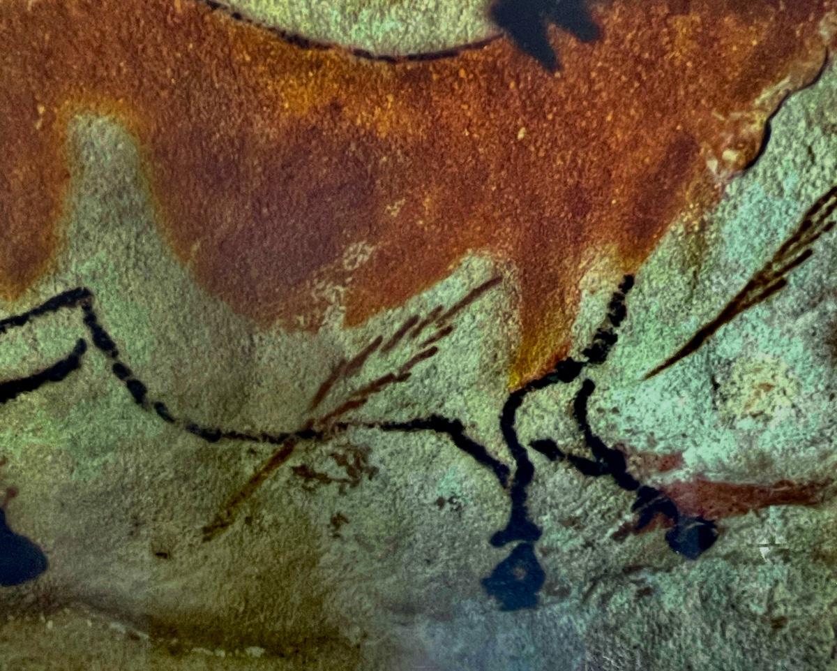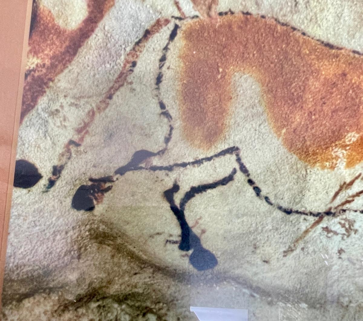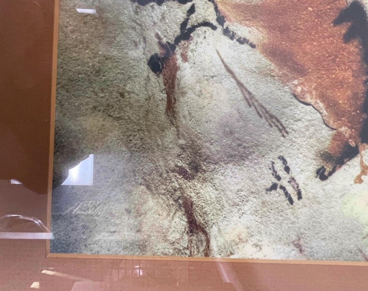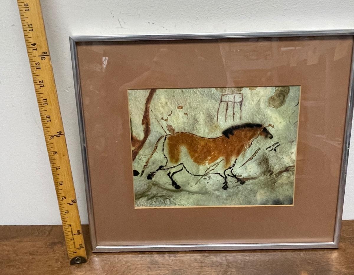 Copy of the image on a cave wall in France, estimated at over 17,000 years old. Nicely framed and matted modern version.
