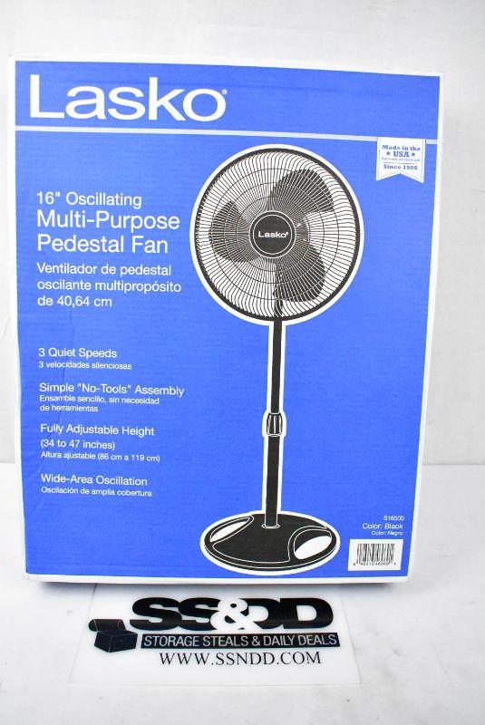 Lasko 16" Oscillating Pedestal Stand 3-Speed Fan, Model S16500, Black