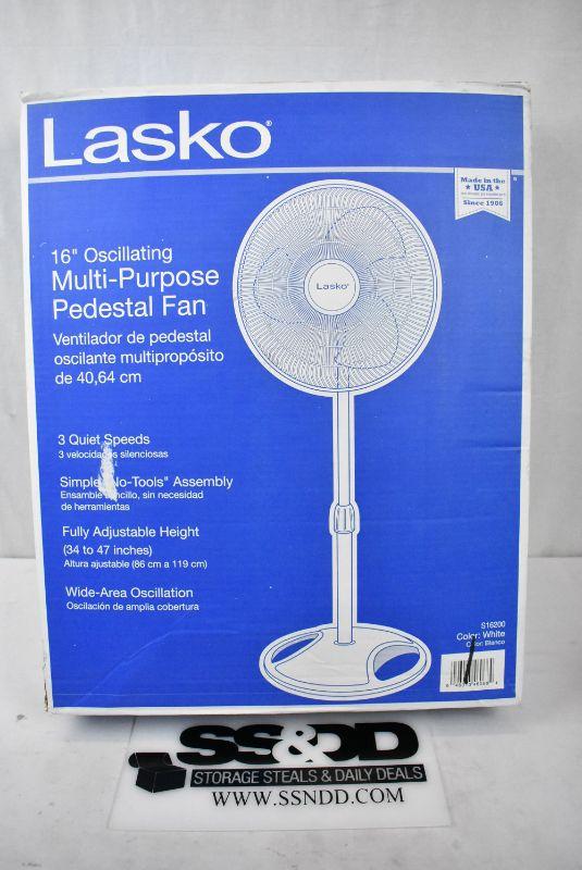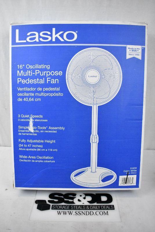 Lasko 16" Oscillating Pedestal Stand 3-Speed Fan, Model S16200, White - New