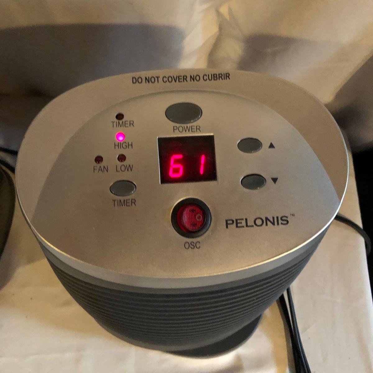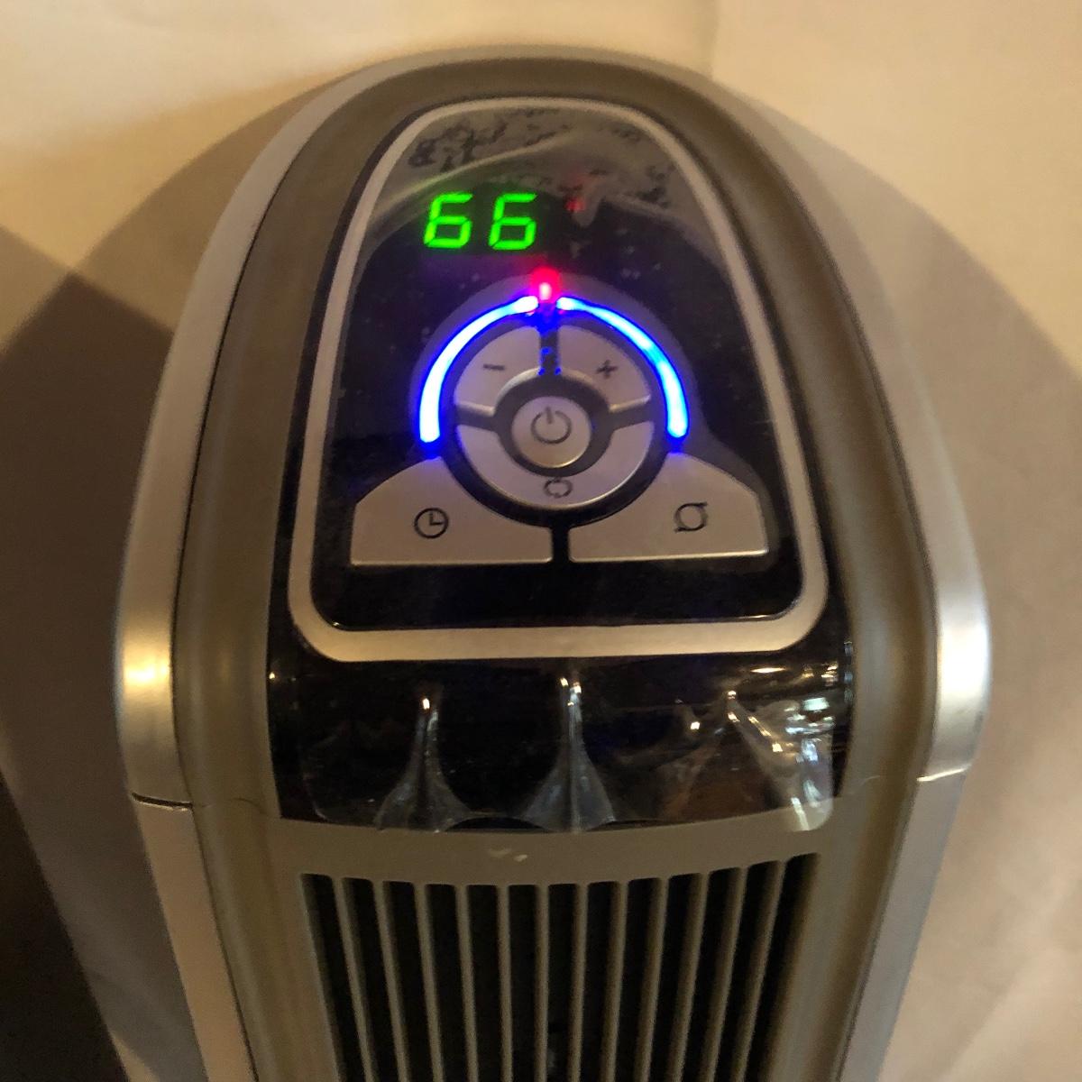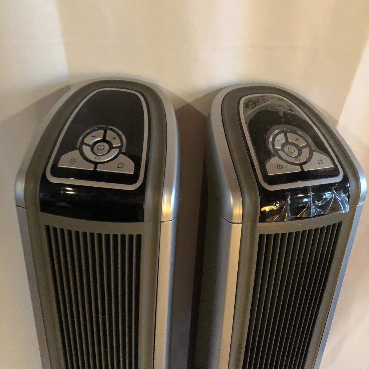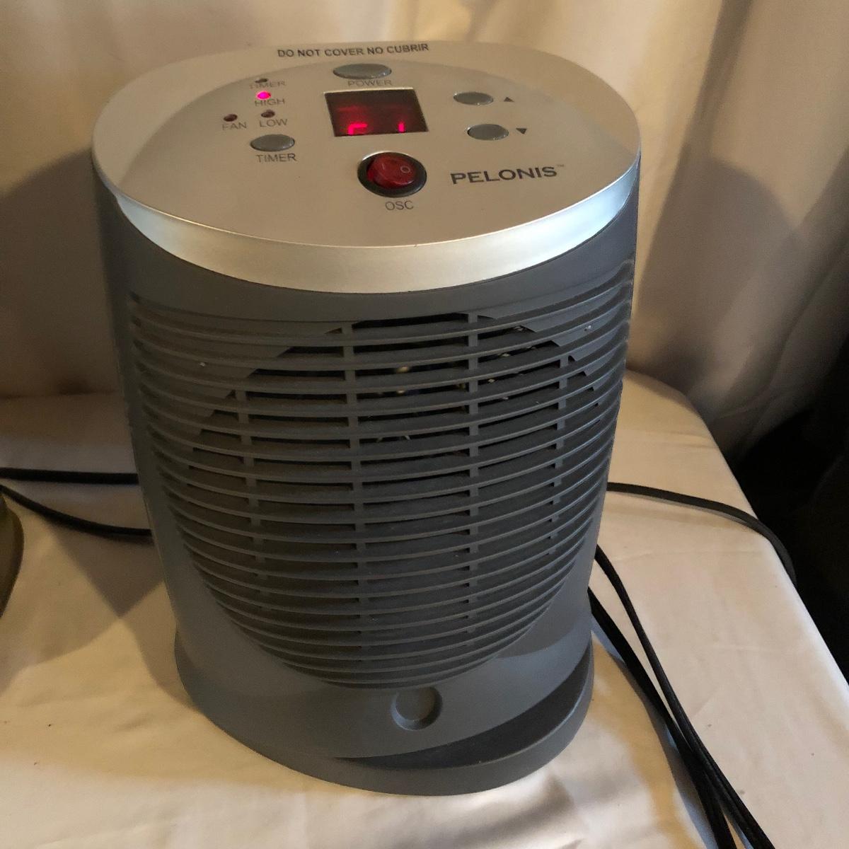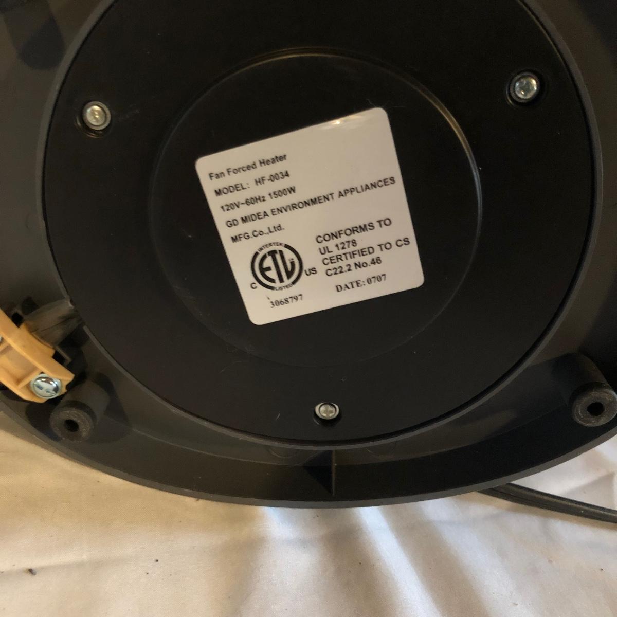 Lot includes two Lasko model # 5588 oscillating heaters, Pelonis model # HF-0034 oscillating heater and a Sharper Image model # VX351 heater. All heaters worked when tested. Lasko heaters measure 7” x 8” x 33”.