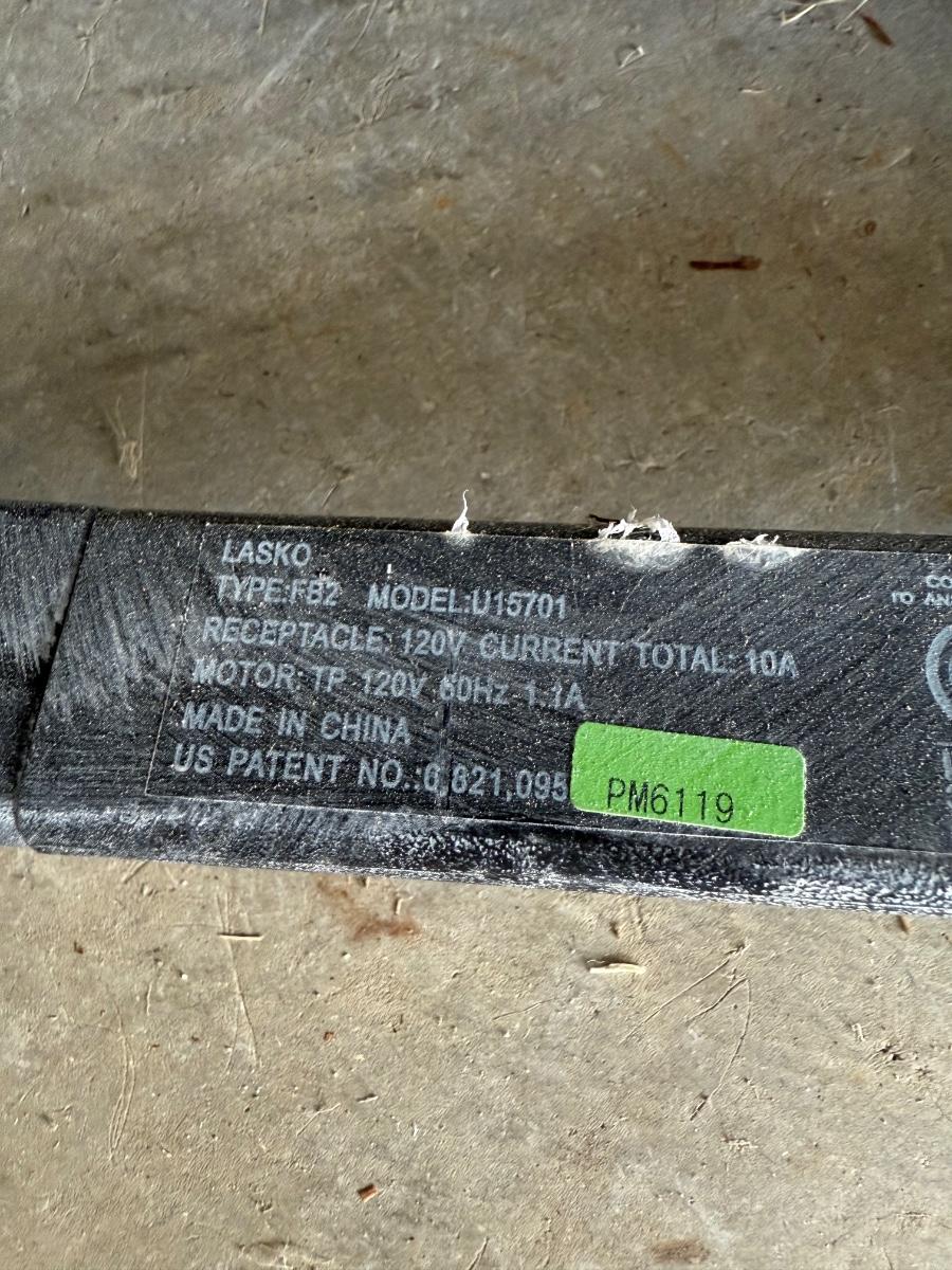 Lasko brand Pivoting utility blower. In used condition. Powered on when plugged in. Please see photos for details. Local Pickup Only