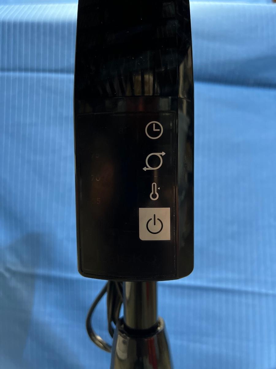 Four speeds. Timer. Height is adjustable.