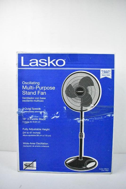 Lasko Oscillating Multi-Purpose Stand Fan, Black - New, Open Box