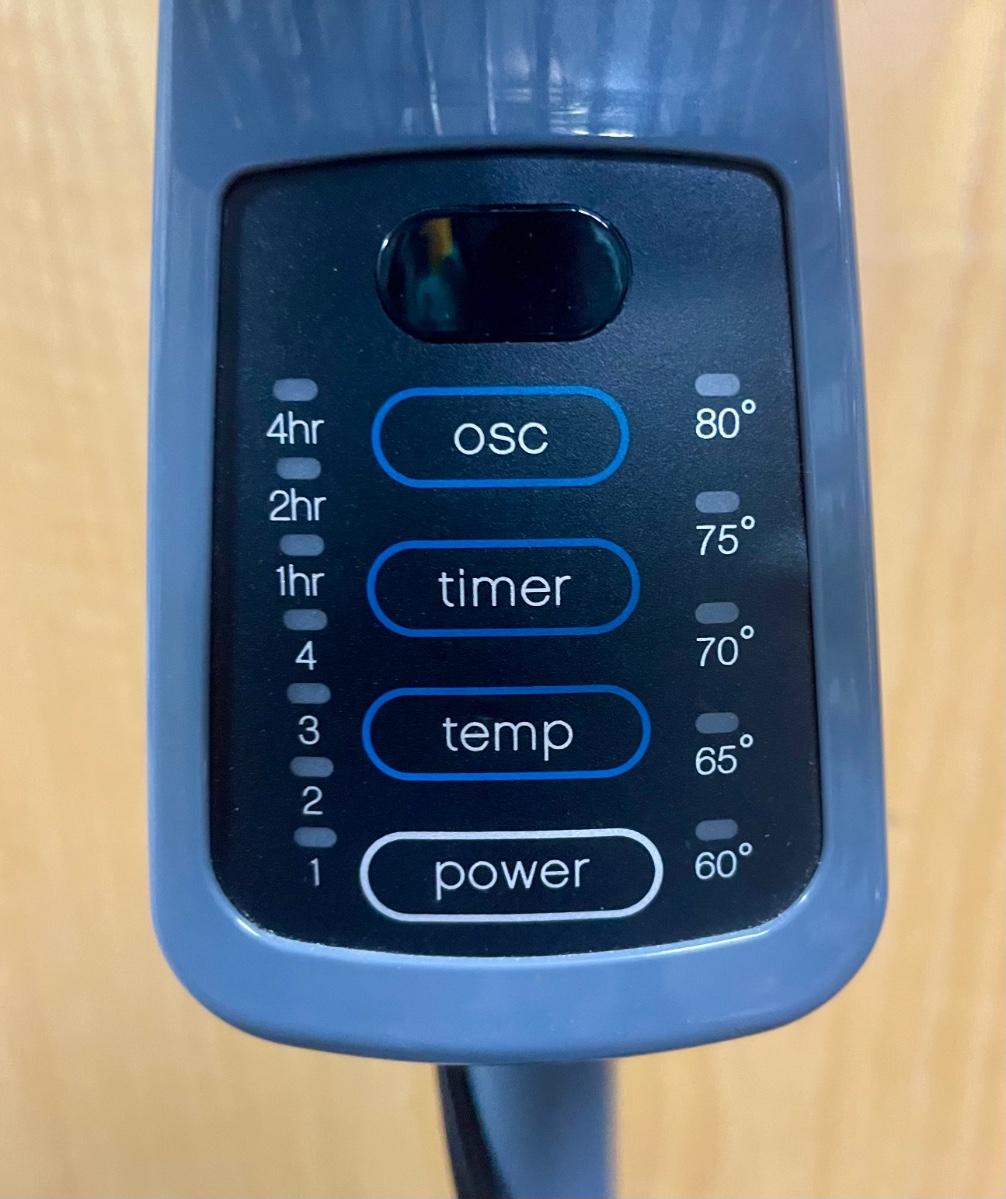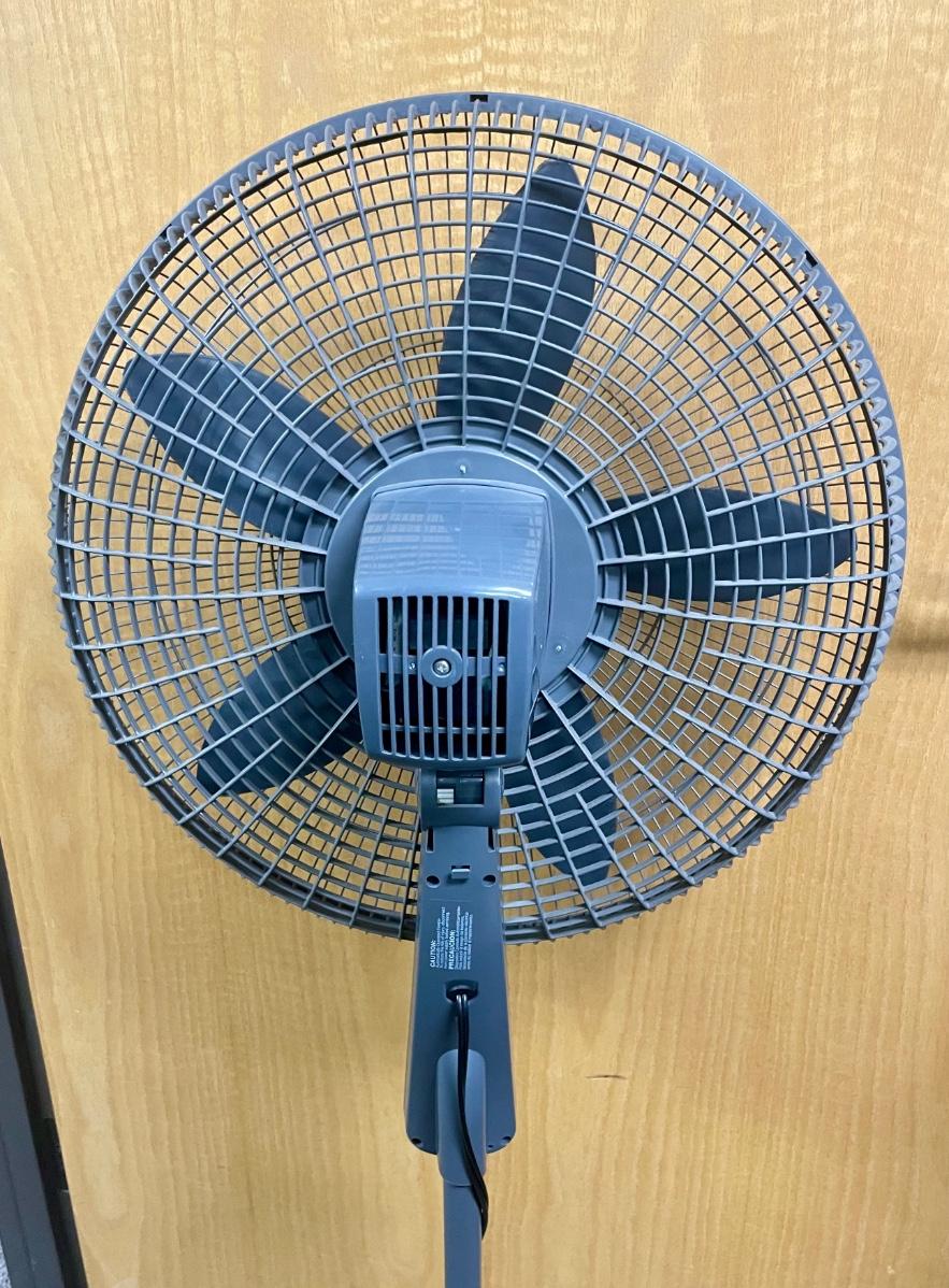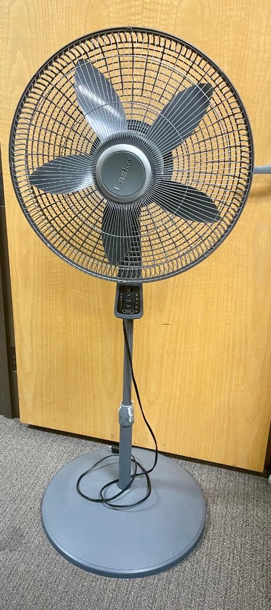 4 speeds, oscillation feature. Model 18P, tested, all functions work as expected. Overall height is approx. 50”. Height can be adjusted.