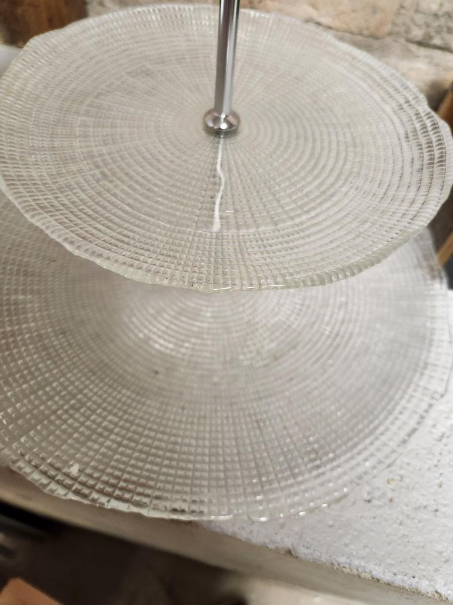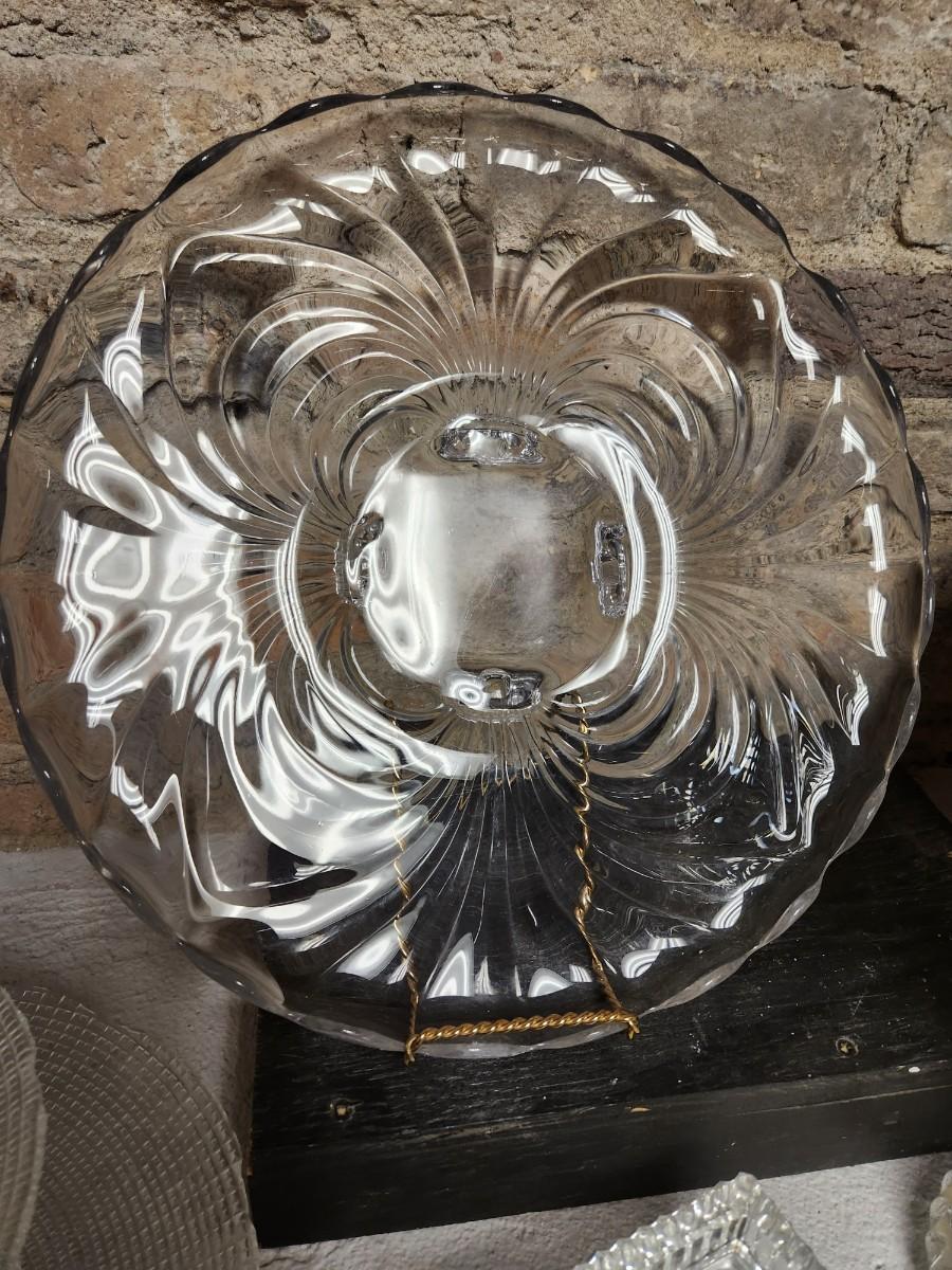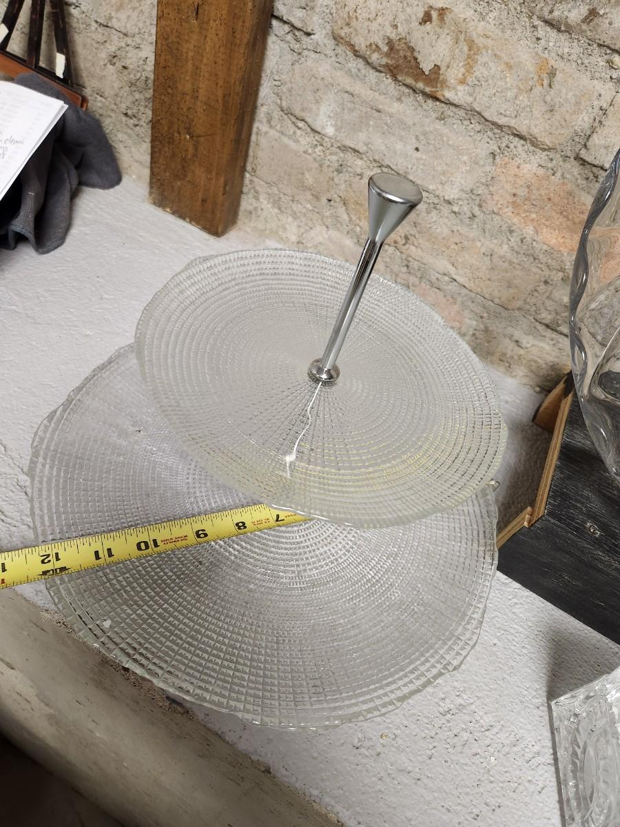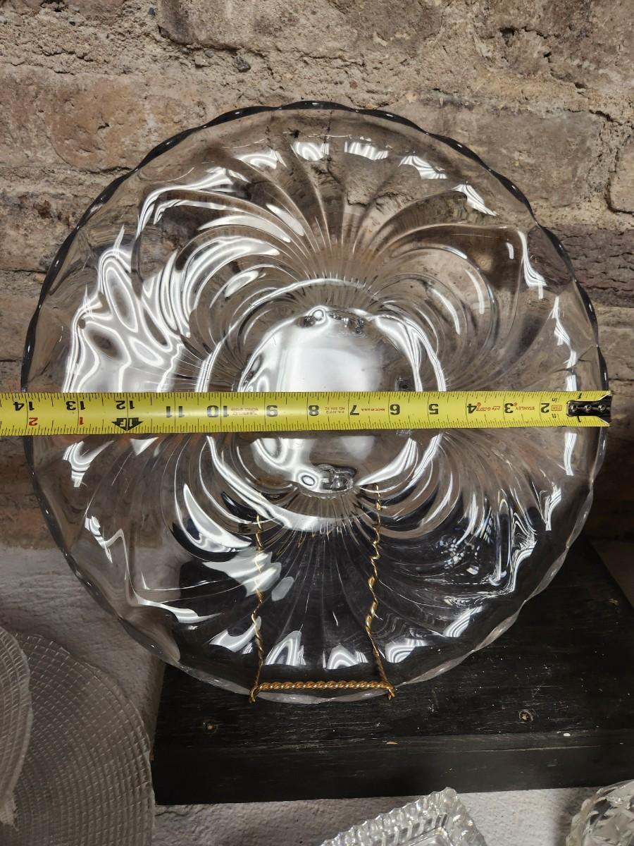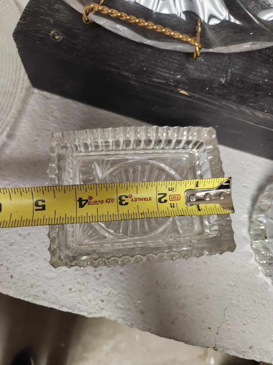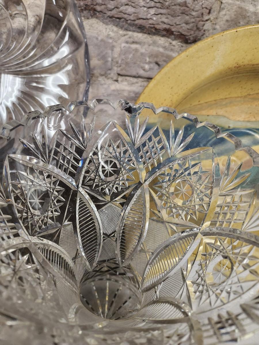 Huge 4 footed Caprice platter, awesome 2 tiered tidbit, huge crystal vase..notice the damage. That little box is a cigarette holder and ashtray and a beautiful flanged potter bowl.
