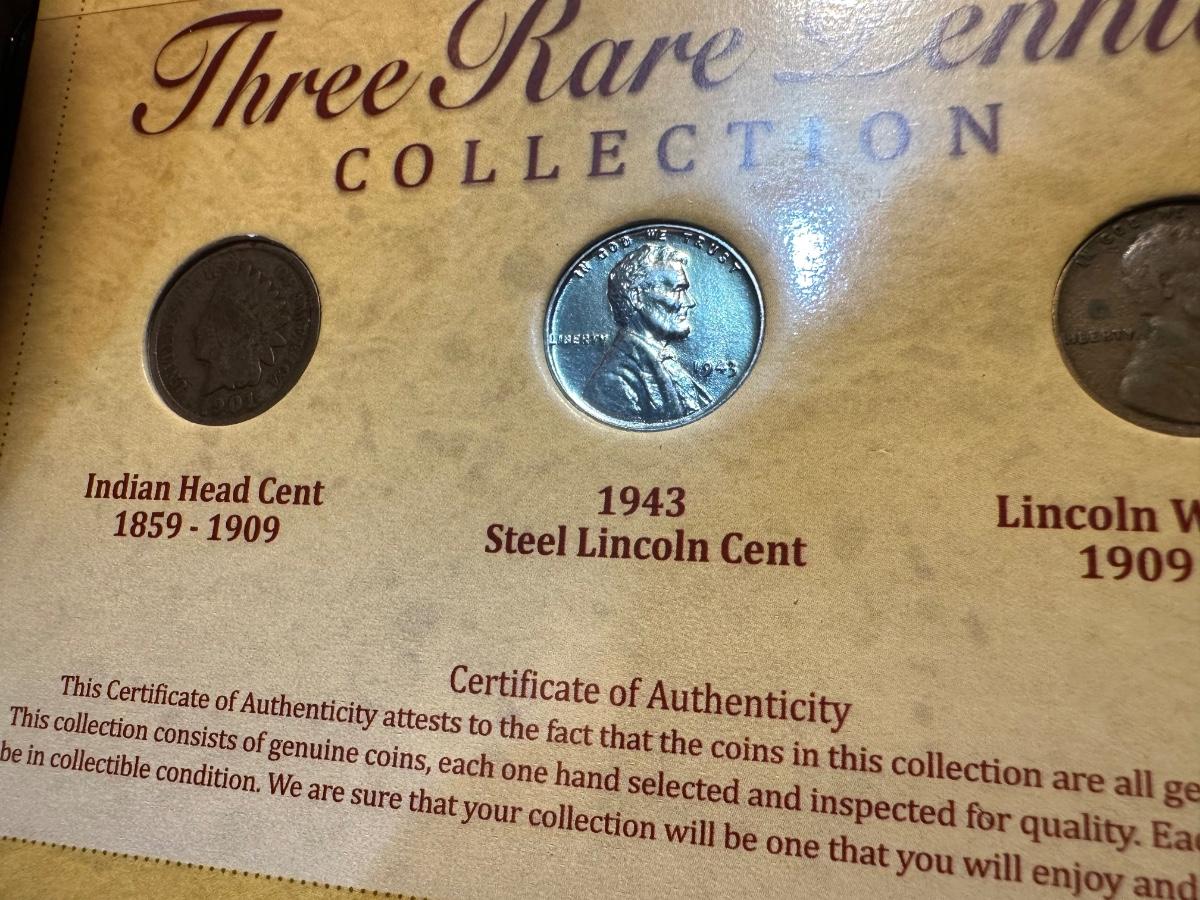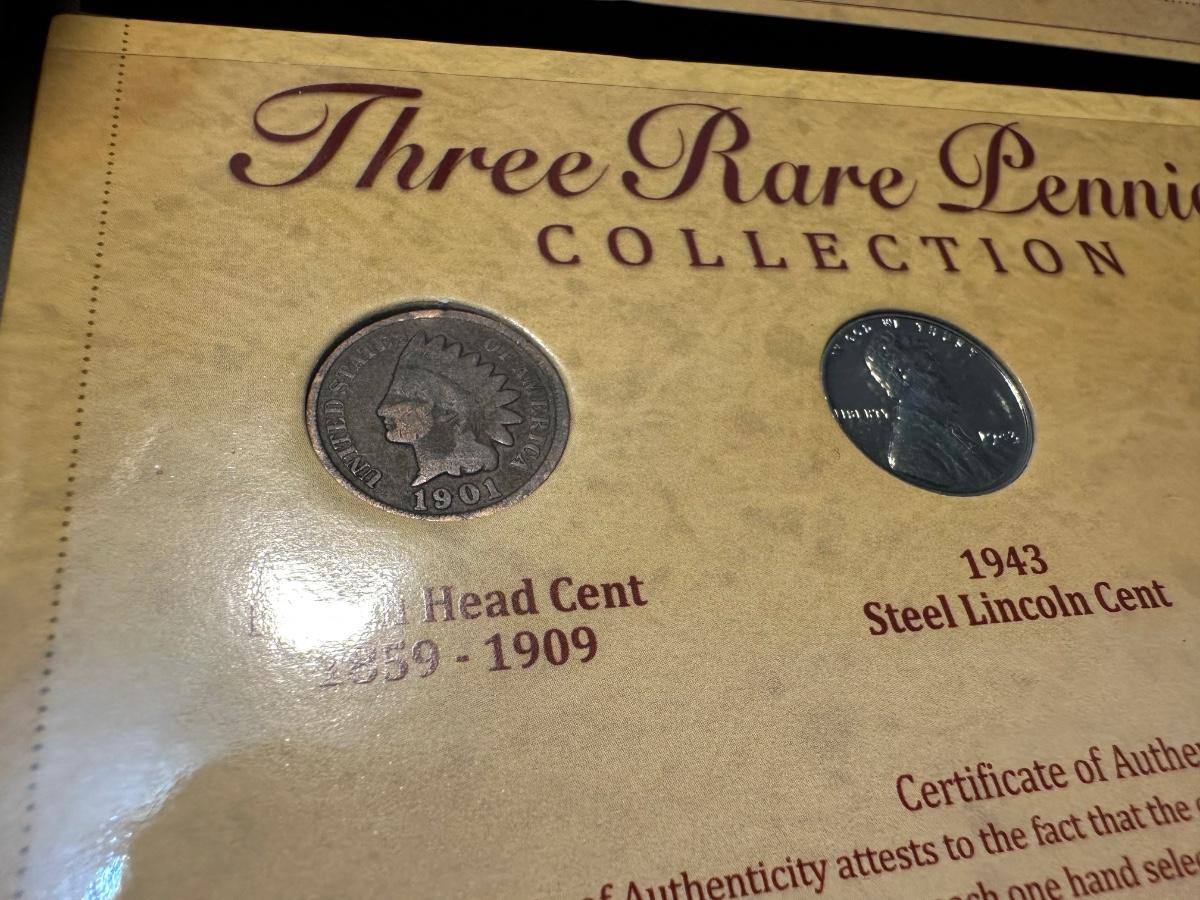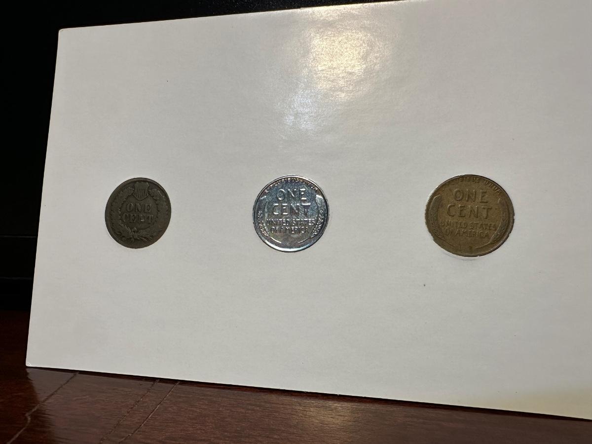 LAST THREE YEARS OF INDIAN HEAD PENNIES, 1901 INDIAN HEAD PENNY, 1943 STEEL PENNY AND 1944 WHEAT PENNY