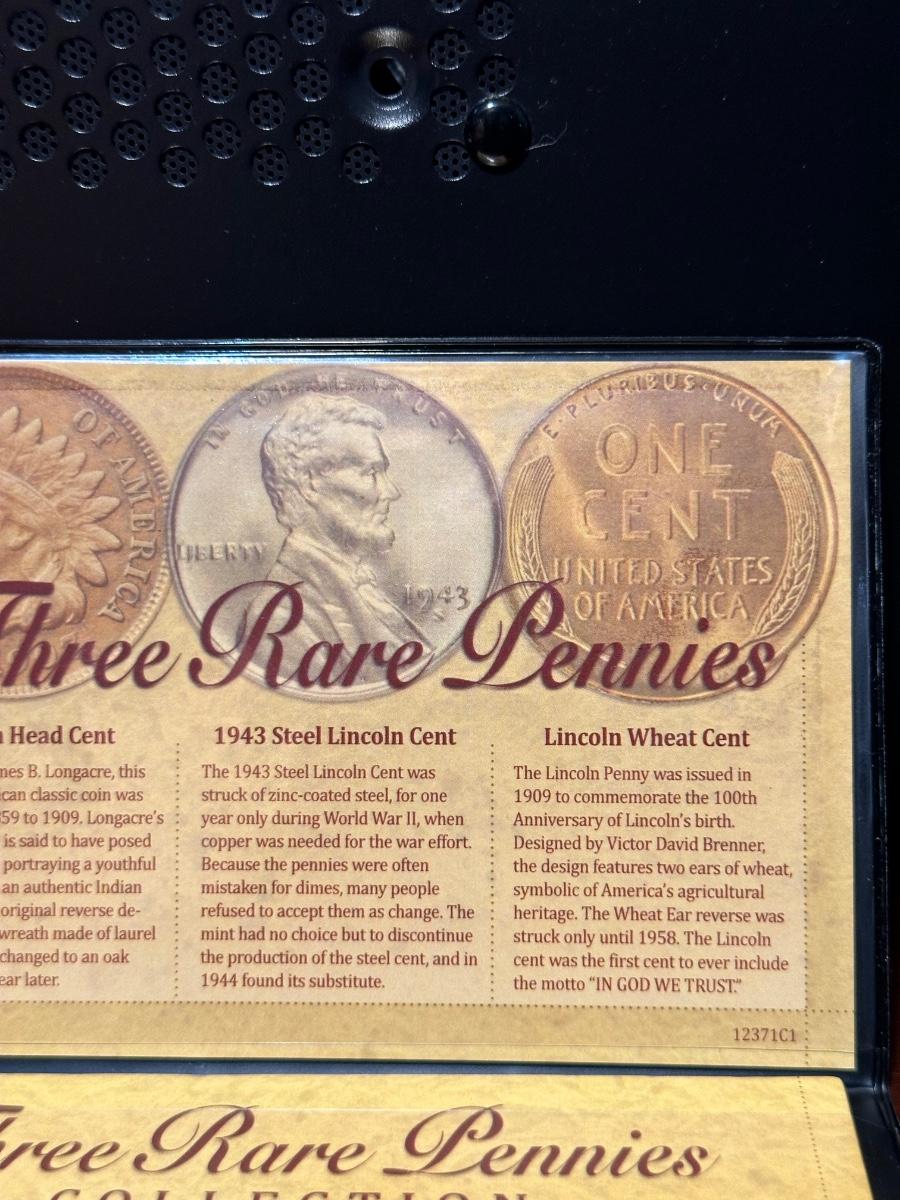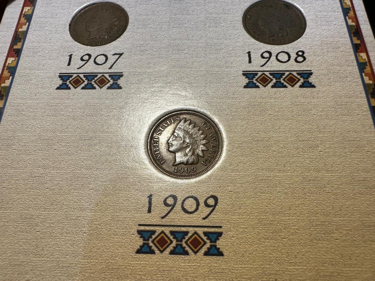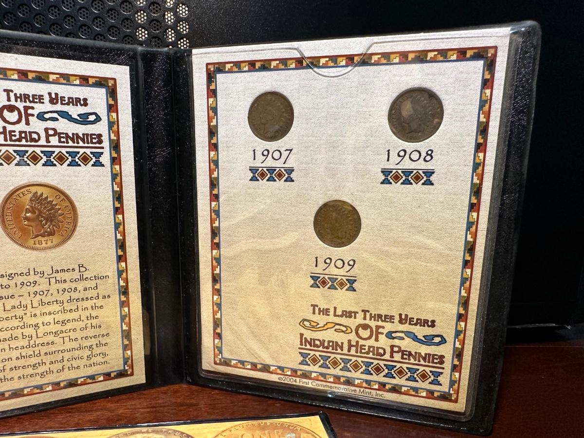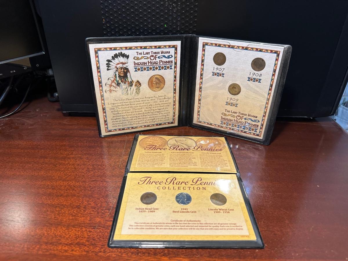 LAST THREE YEARS OF INDIAN HEAD PENNIES, 1901 INDIAN HEAD PENNY, 1943 STEEL PENNY AND 1944 WHEAT PENNY